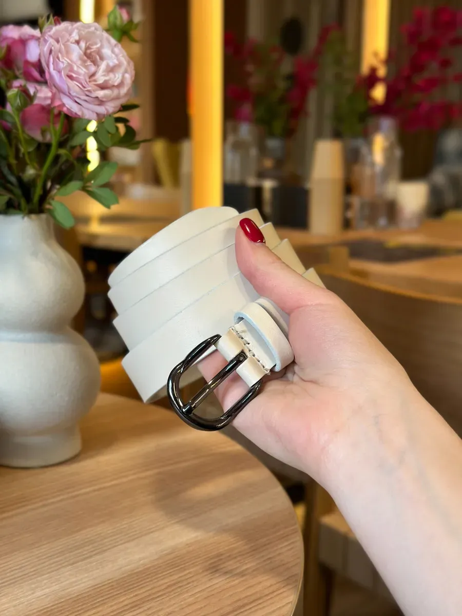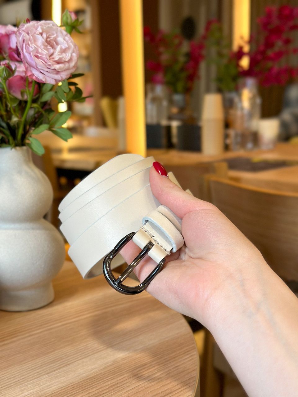 Шкіряний жіночий ремінь в білому кольорі 6231
