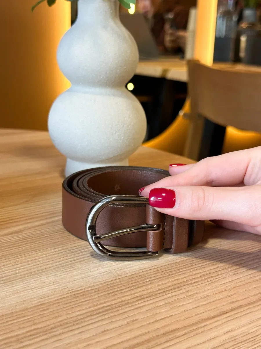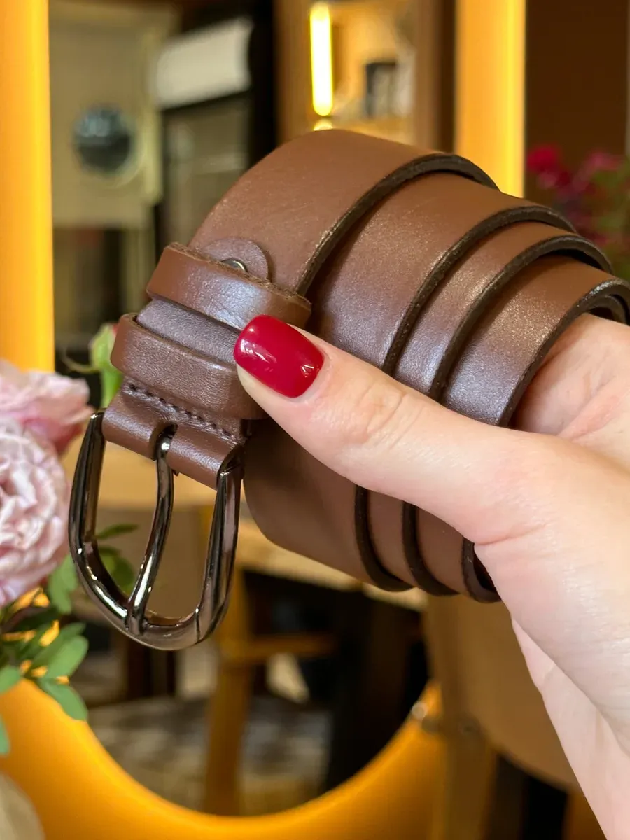 Шкіряний жіночий ремінь в коричневому кольорі 6081