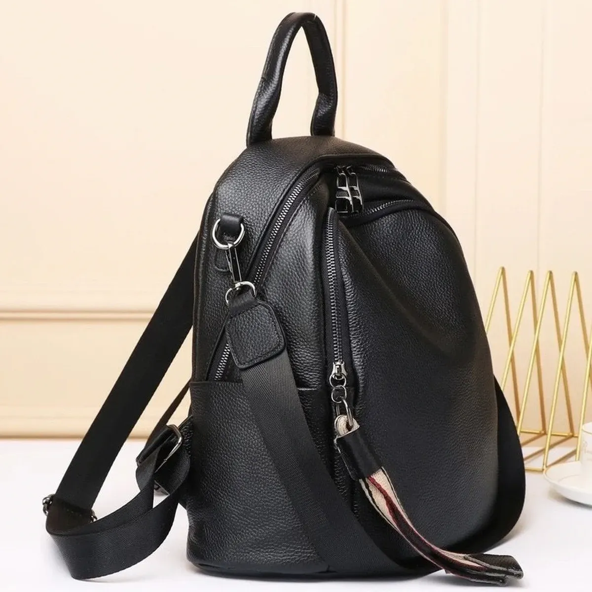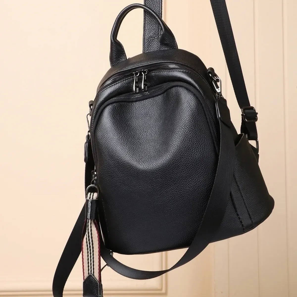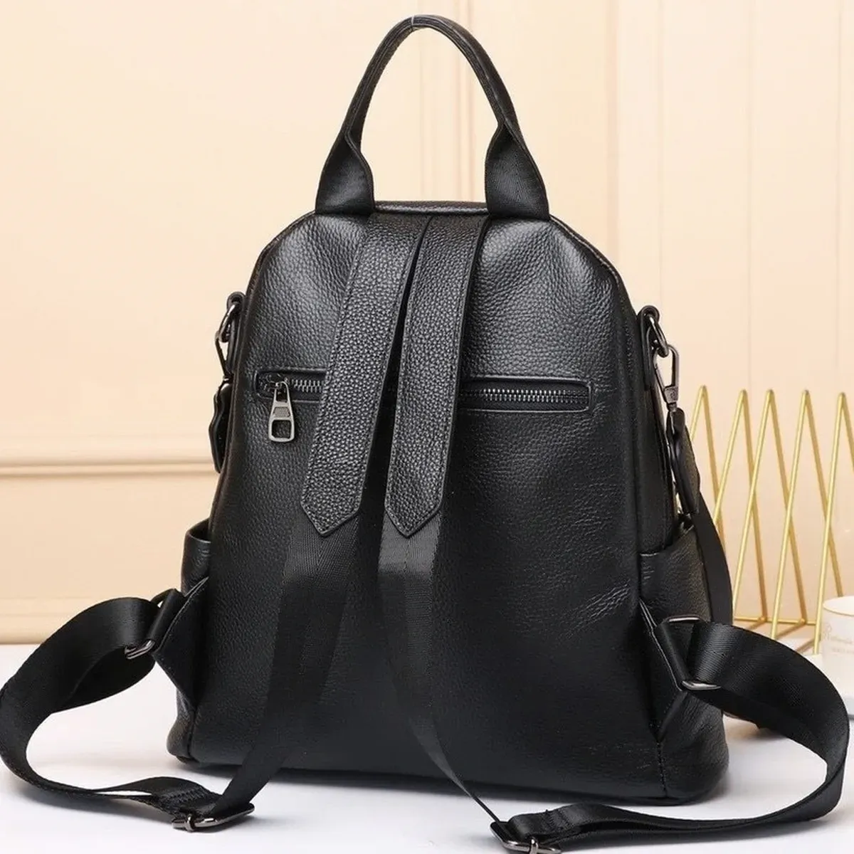 Шкіряний жіночий рюкзак міський 30х24х13, матова сумка на плечі, чорна