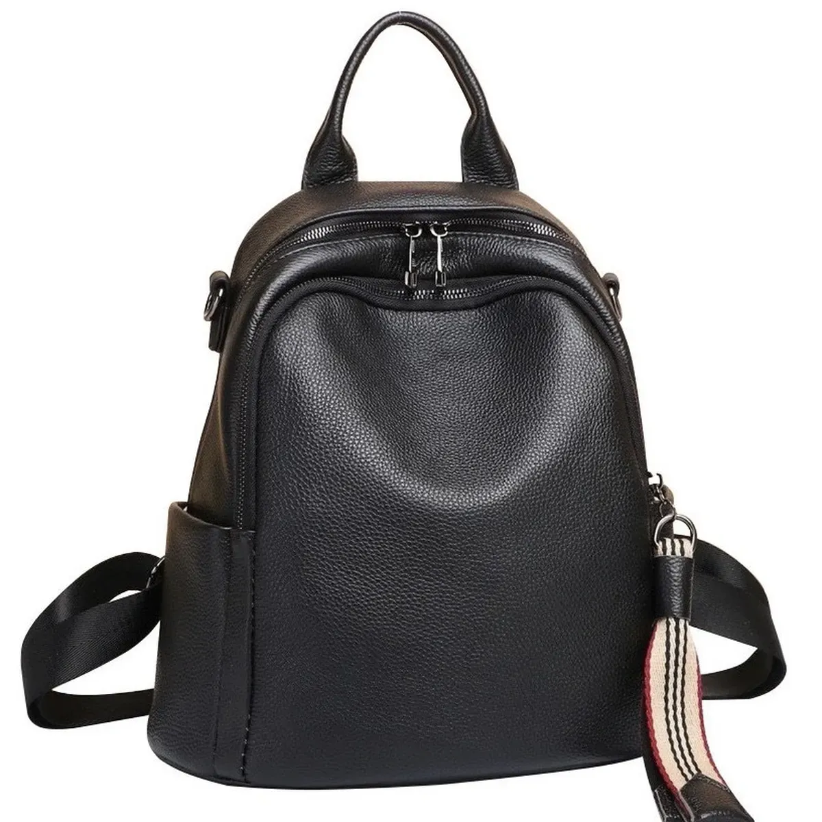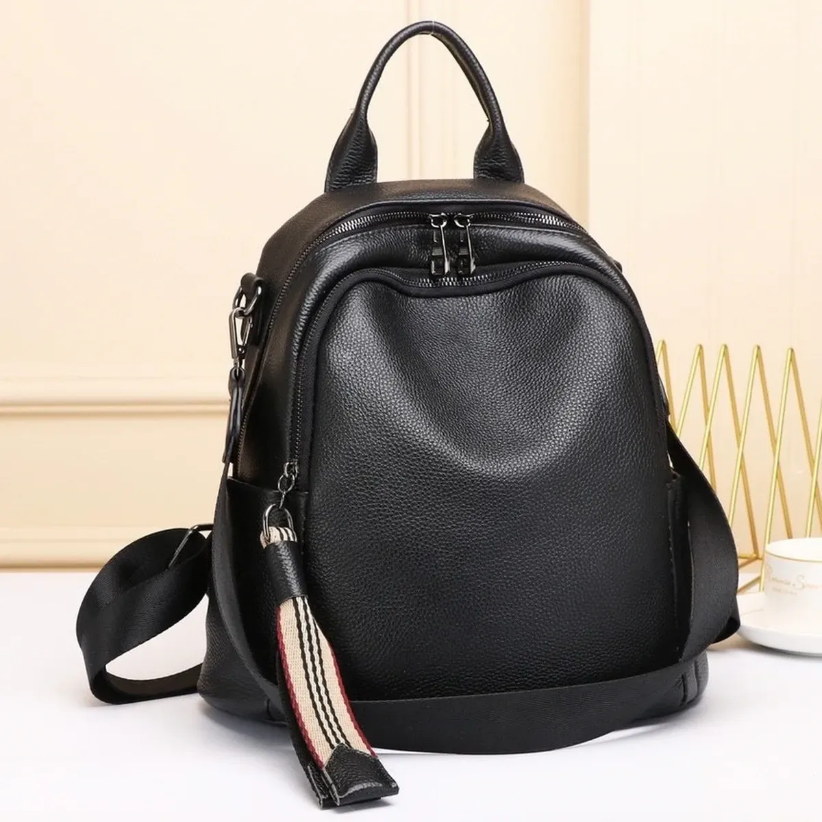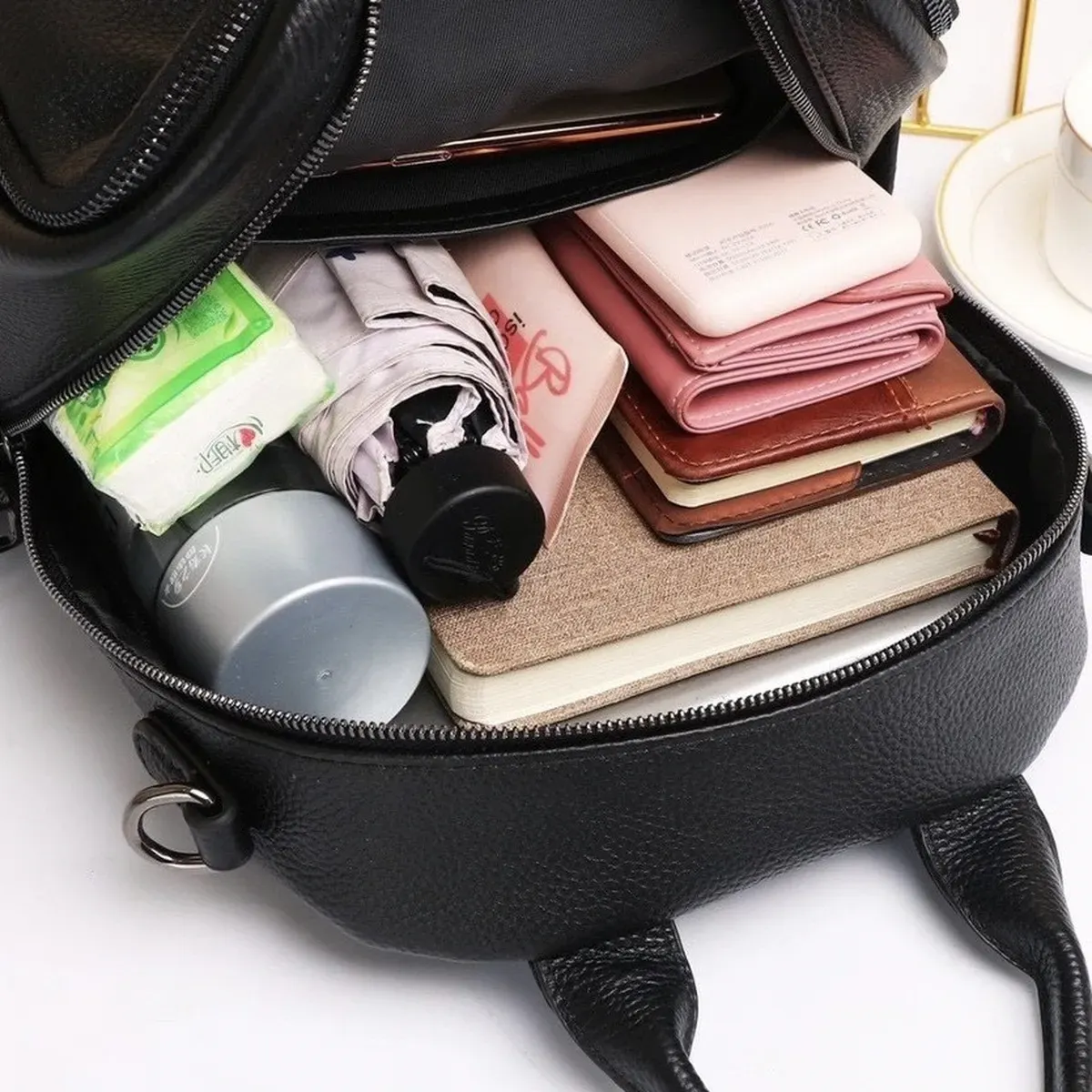 Шкіряний жіночий рюкзак міський 30х24х13, матова сумка на плечі, чорна