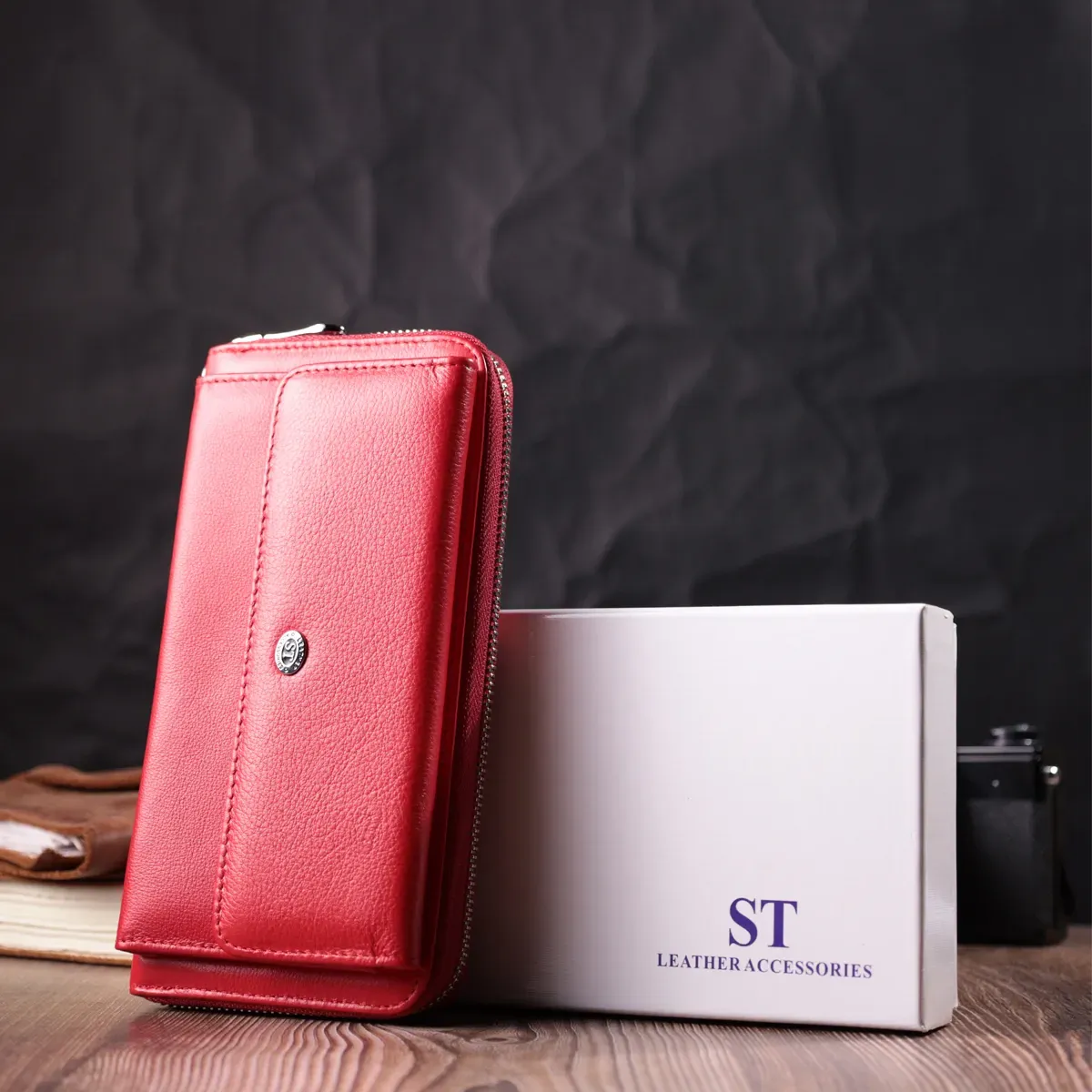 Симпатичний гаманець-клатч із ручкою для носіння в руці з натуральної шкіри ST Leather 22530 Червоний