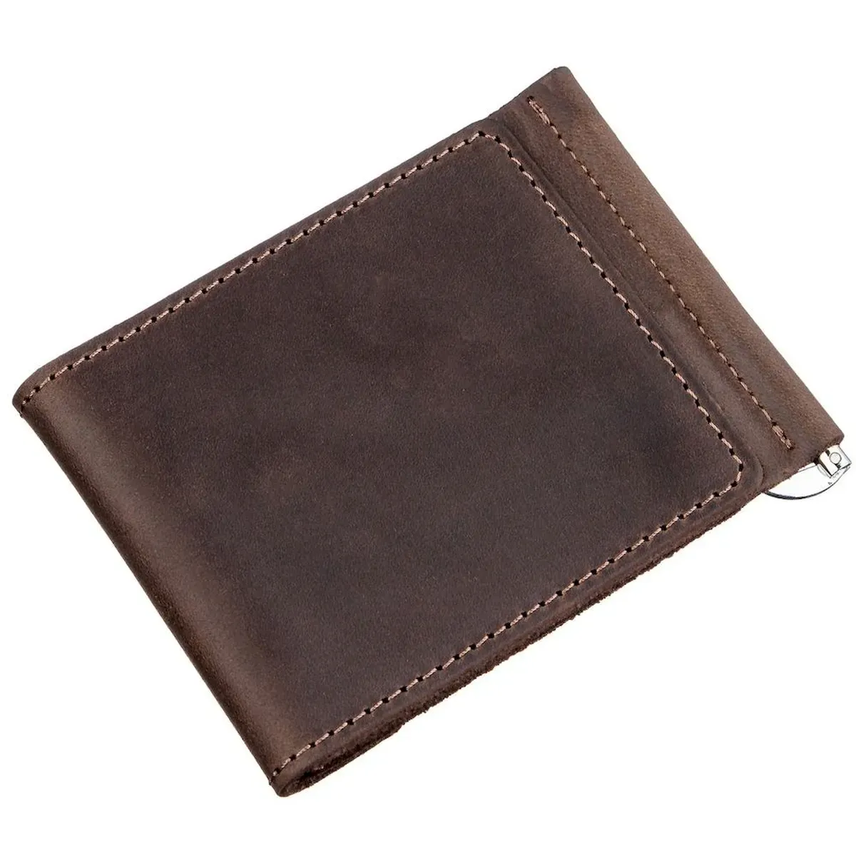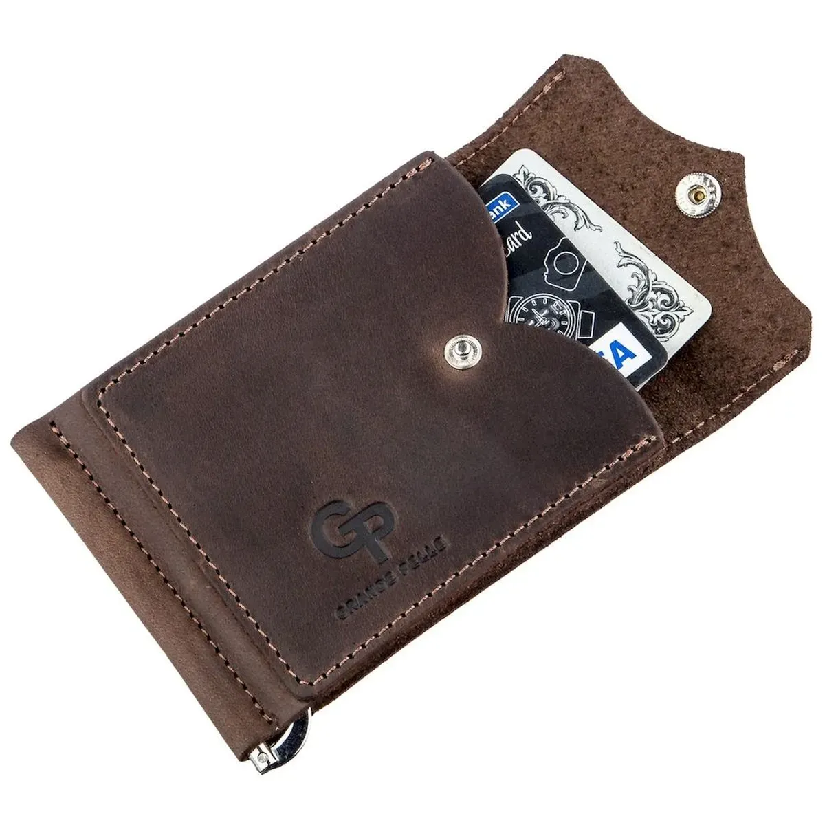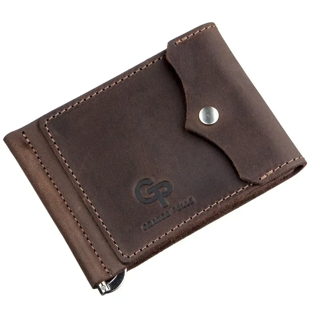 Солідний шкіряний затискач для грошей GRANDE PELLE 11197 Коричневий