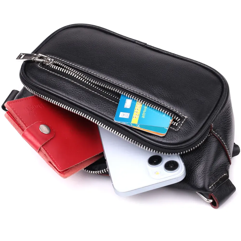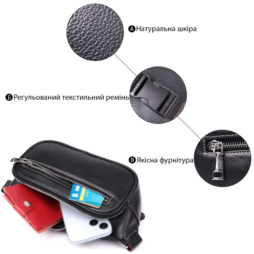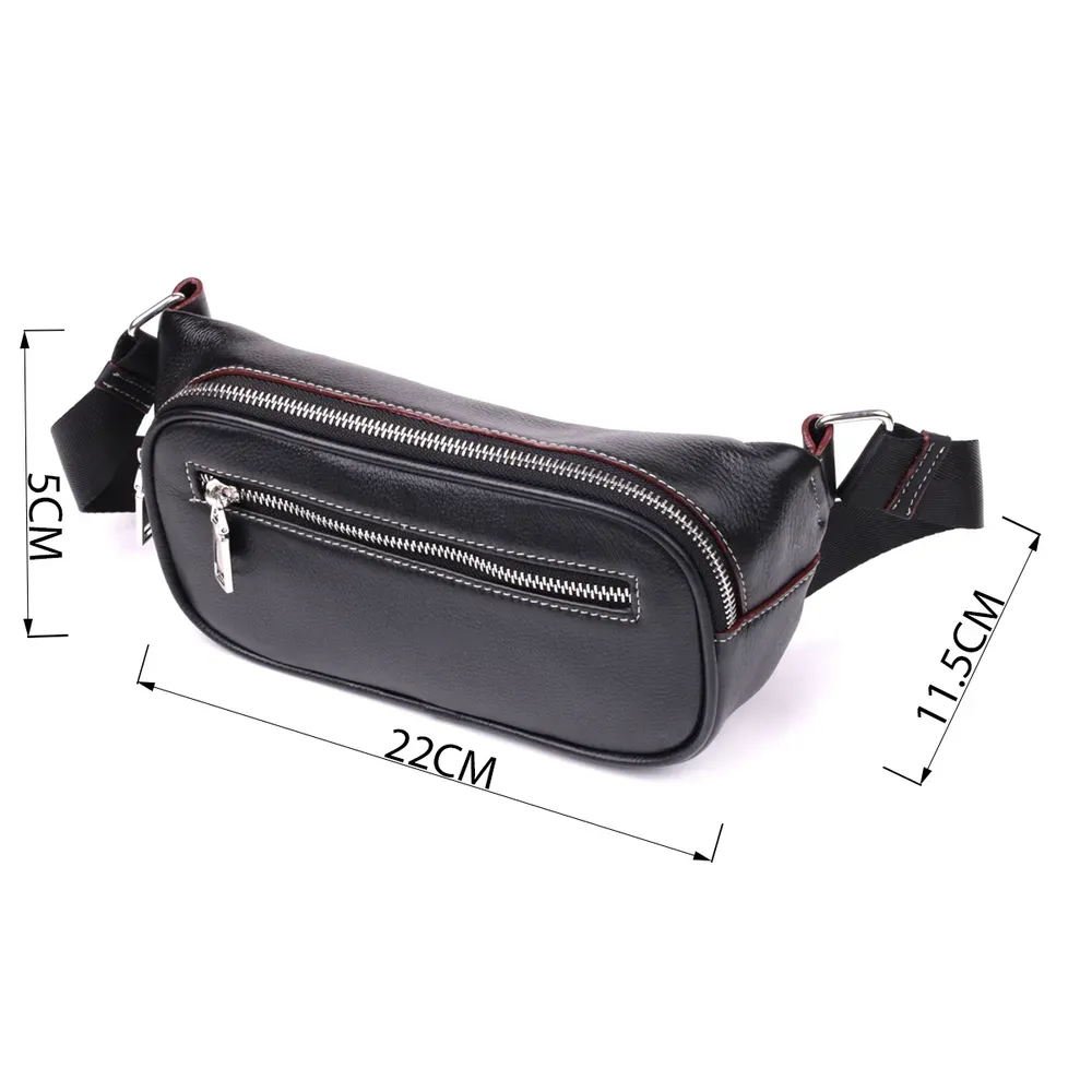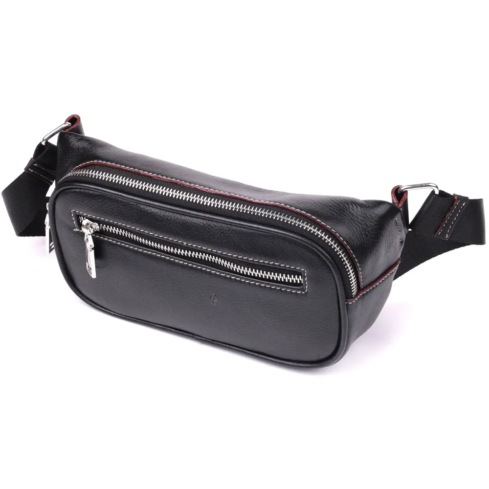 Стильна чоловіча бананки з м'якої натуральної шкіри Vintage 15116 Чорний