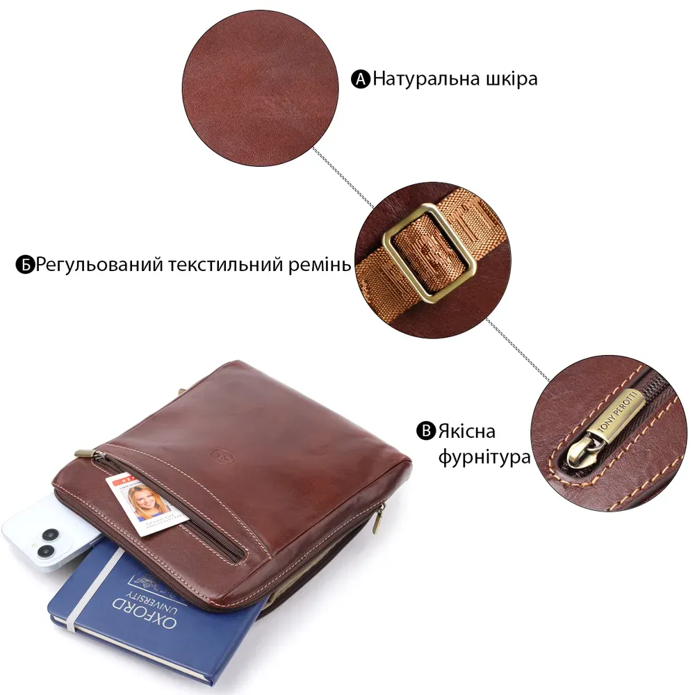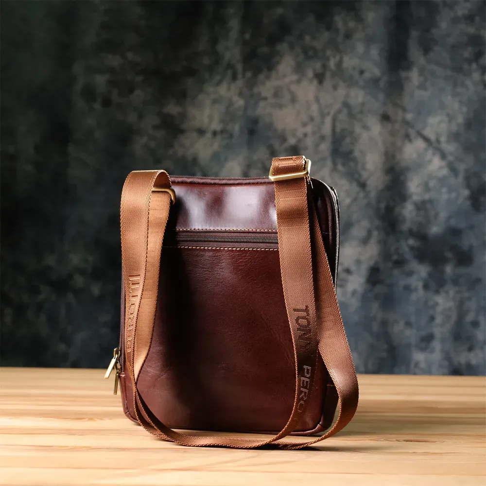 Стильна чоловіча сумка через плече з гладкої натуральної шкіри Tony Perotti 20854_1 (9137-20 moro) Коричневий