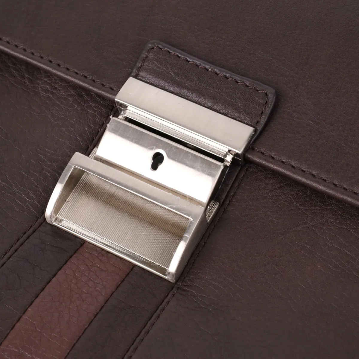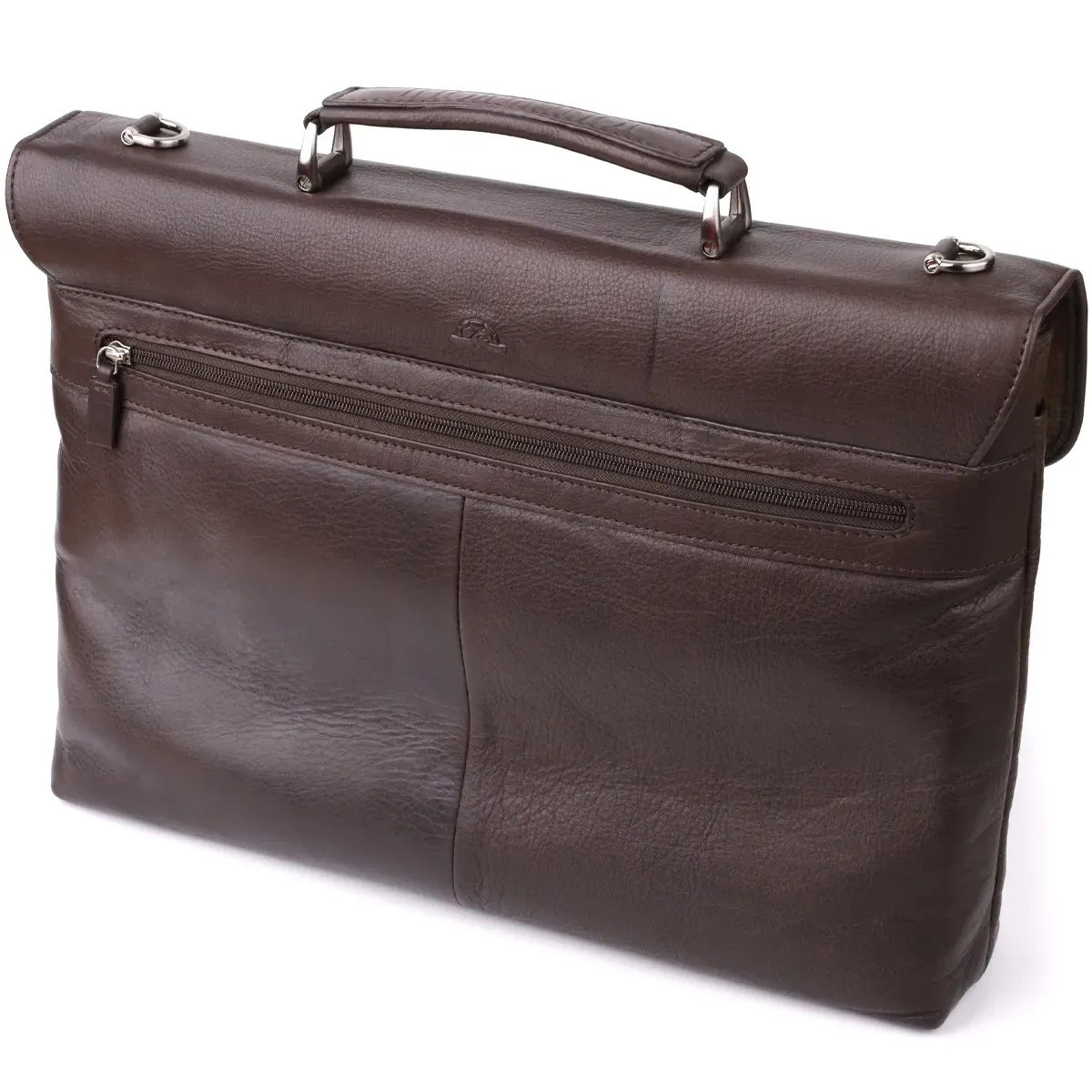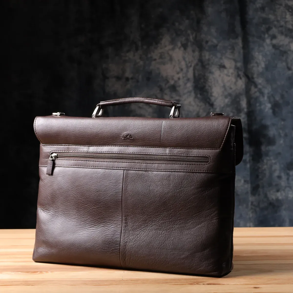 Шкіряний портфель Tony Perotti коричневого кольору з контрастною вставкою поєднує елегантність та продуману функціональність. Основне відділення та додаткові кишені дозволяють зручно зберігати документи, телефон та канцелярське приладдя, а знімний регульований ремінь та верхня ручка забезпечують комфорт при перенесенні. Брендована підкладка та тиснення підкреслюють преміальний стиль виробу.