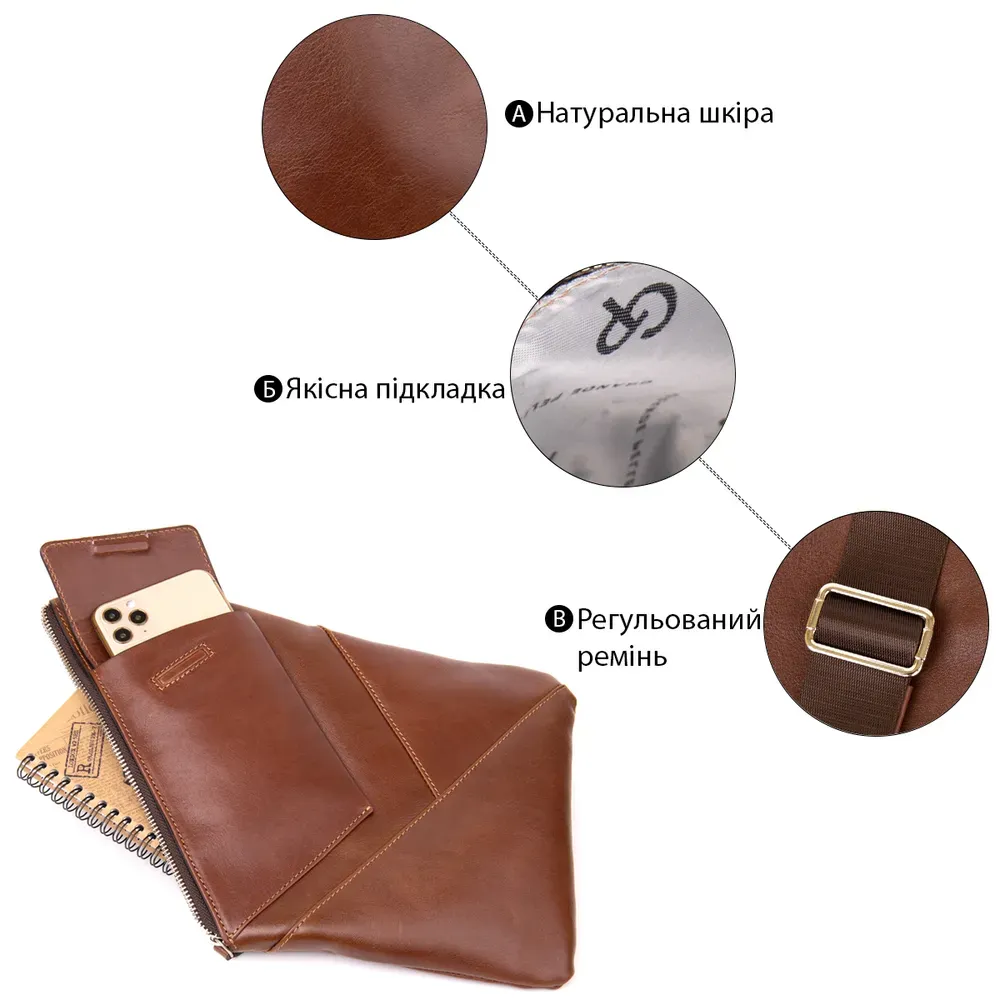 Стильна шкіряна чоловіча сумка через плече GRANDE PELLE 11358 Коричневий