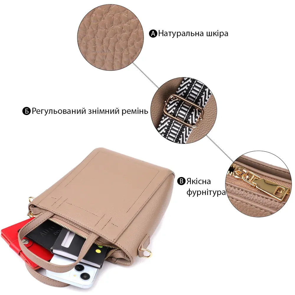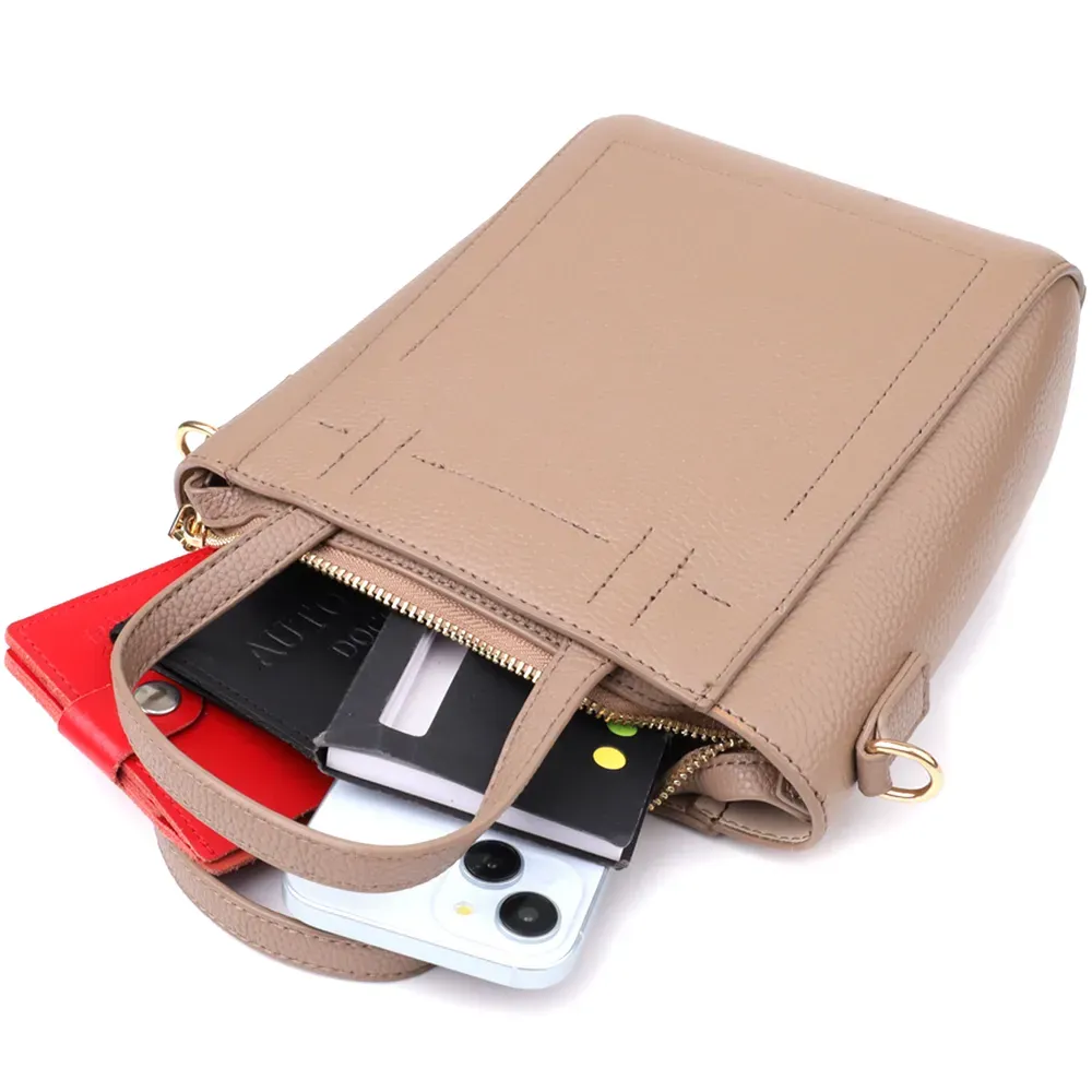 Завдяки своєму нейтральному кольору та лаконічному дизайну, ця бежева шкіряна сумка легко впишеться як у діловий, так і у повсякденний гардероб.