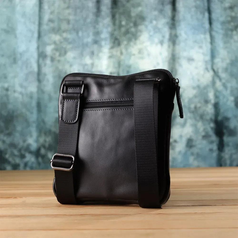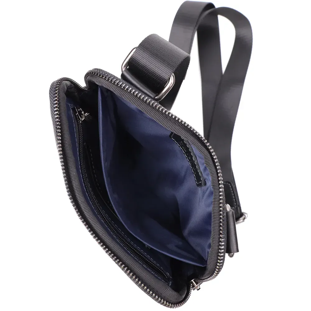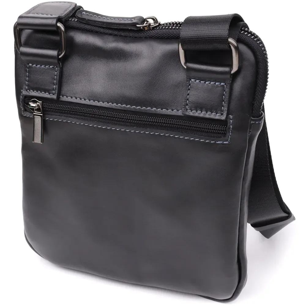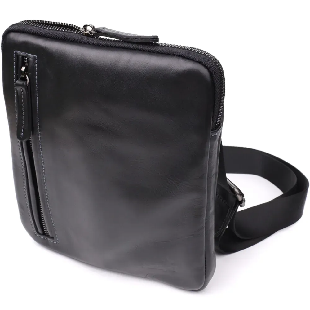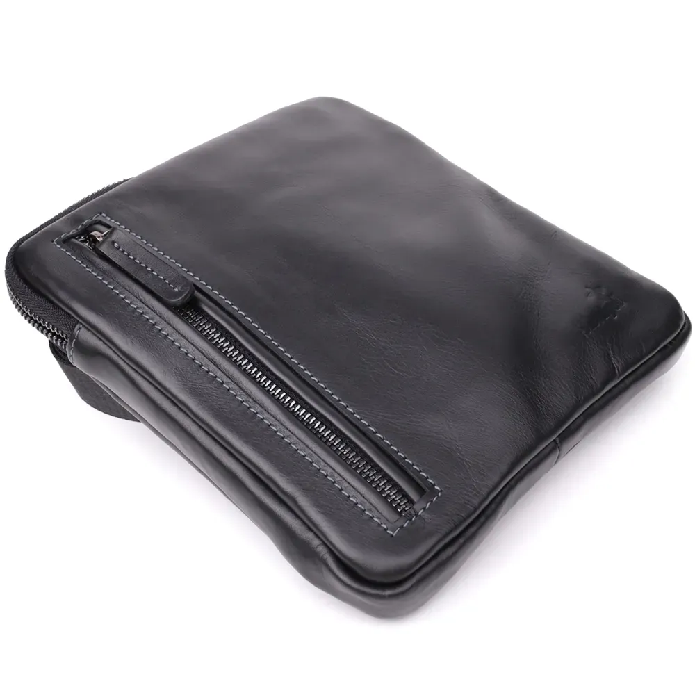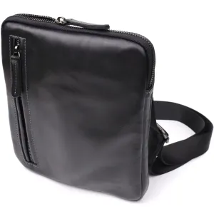Стильна та практична чоловіча сумка на плече з натуральної гладкої шкіри Shvigel 23153 Чорний