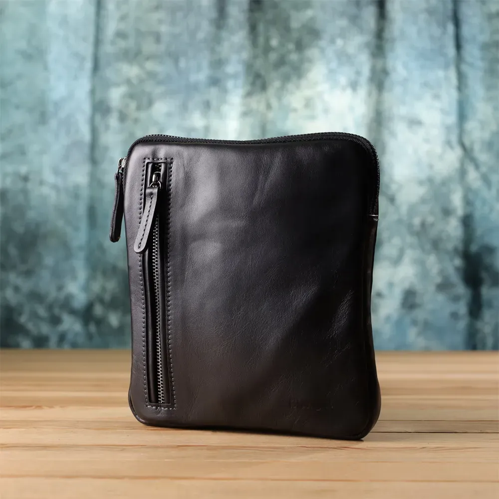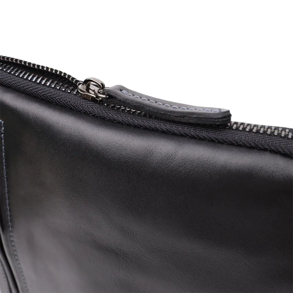Елегантна чоловіча вертикальна сумка із натуральної гладкої шкіри глибокого чорного кольору. Мінімалістичний дизайн та акуратне оздоблення підкреслюють статус власника та роблять аксесуар універсальним для будь-якого стилю – від класичного до повсякденного.