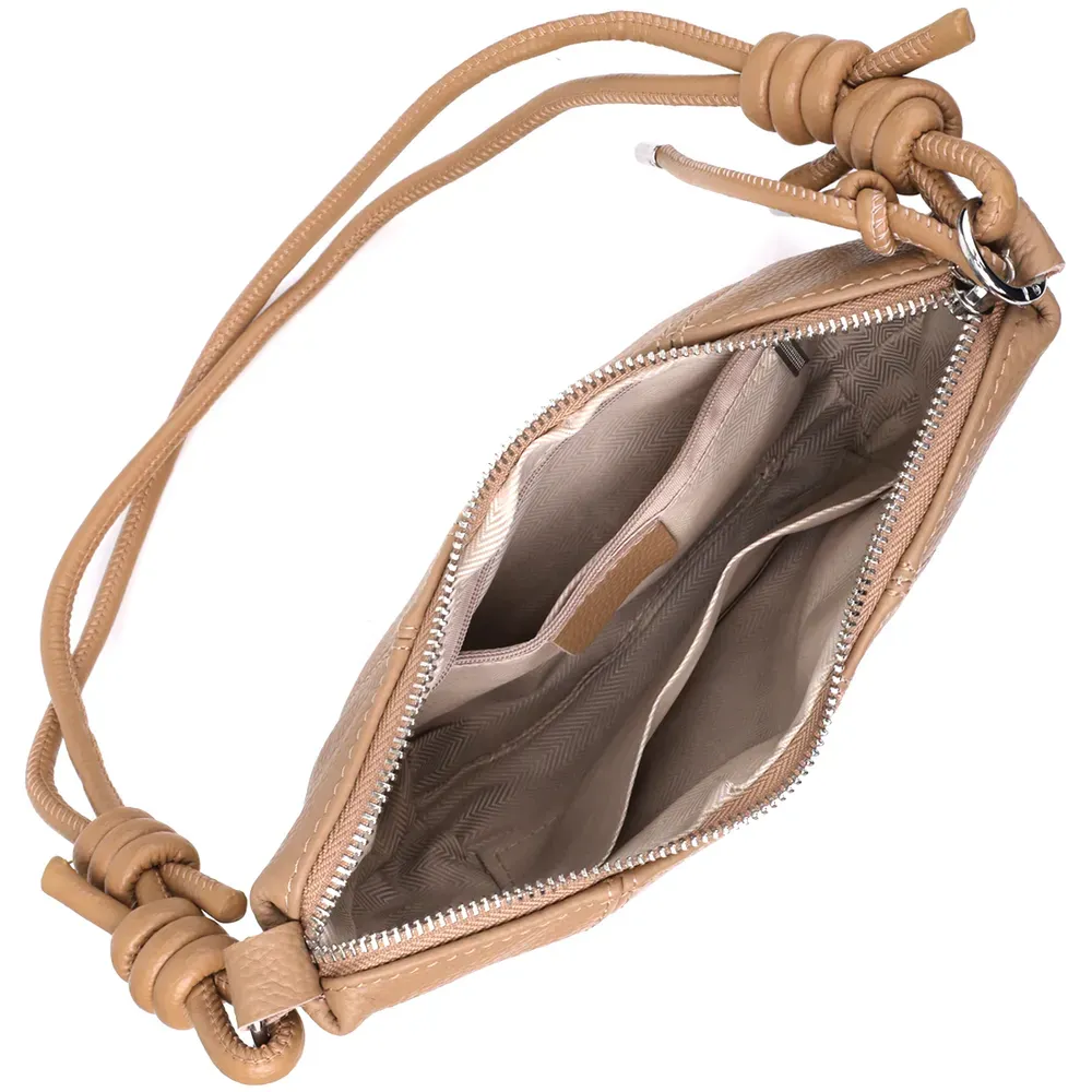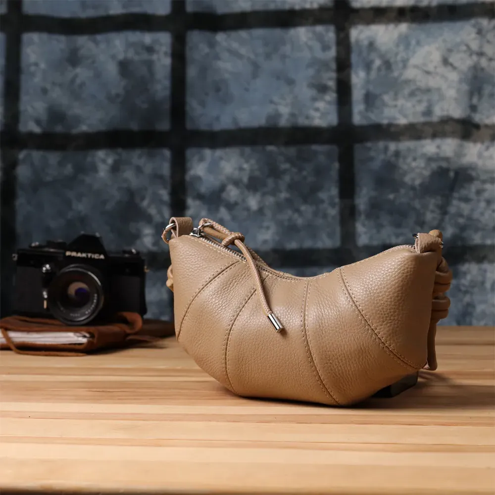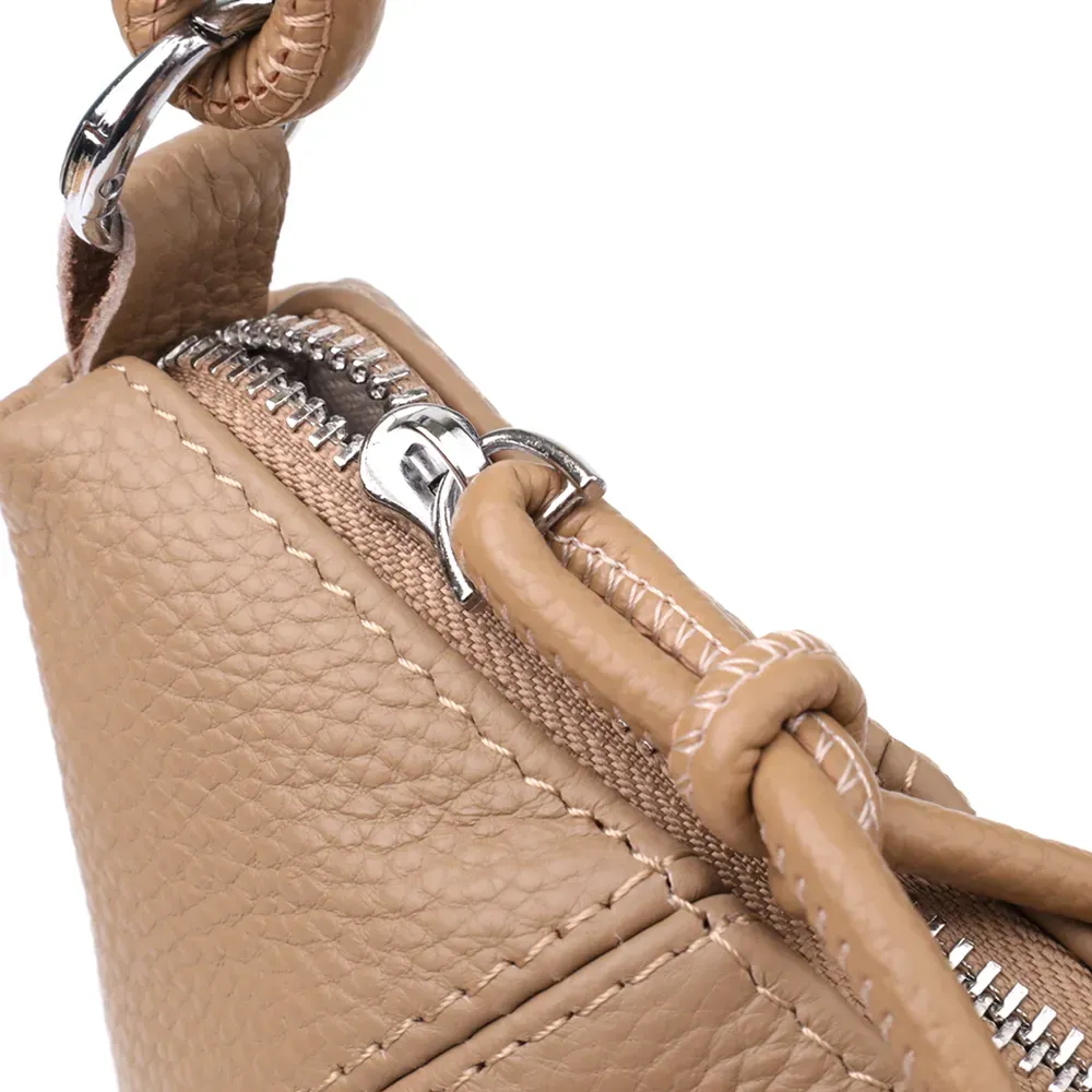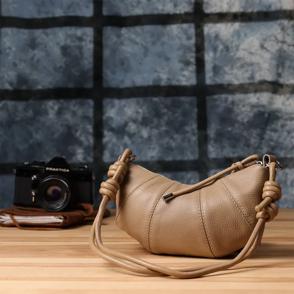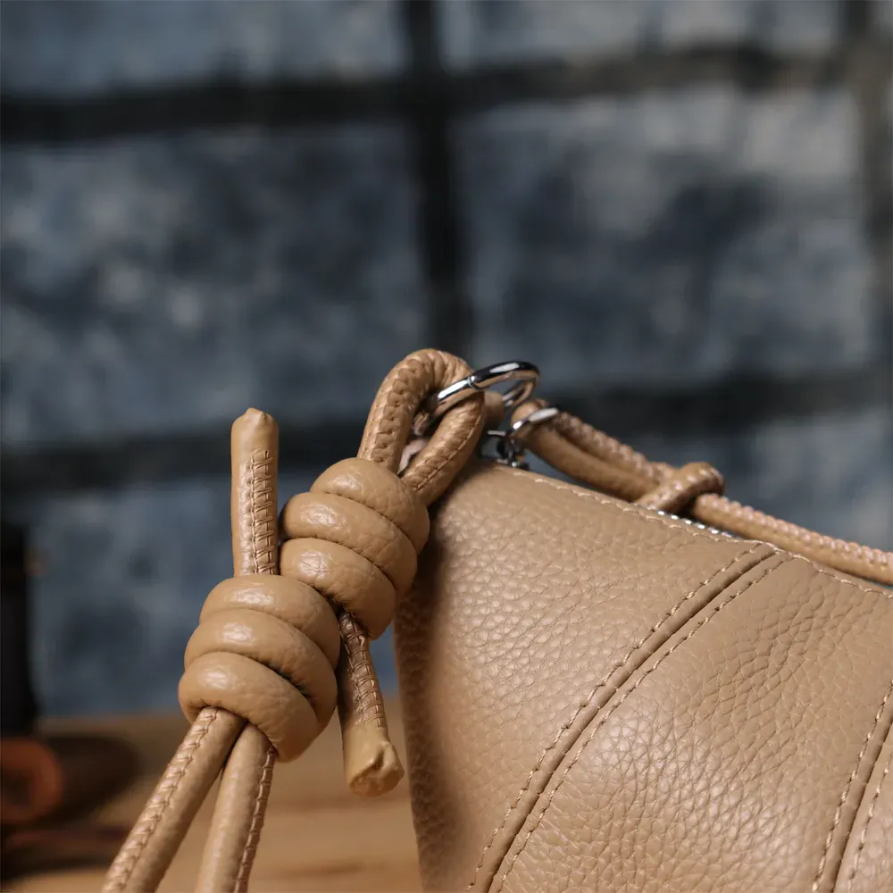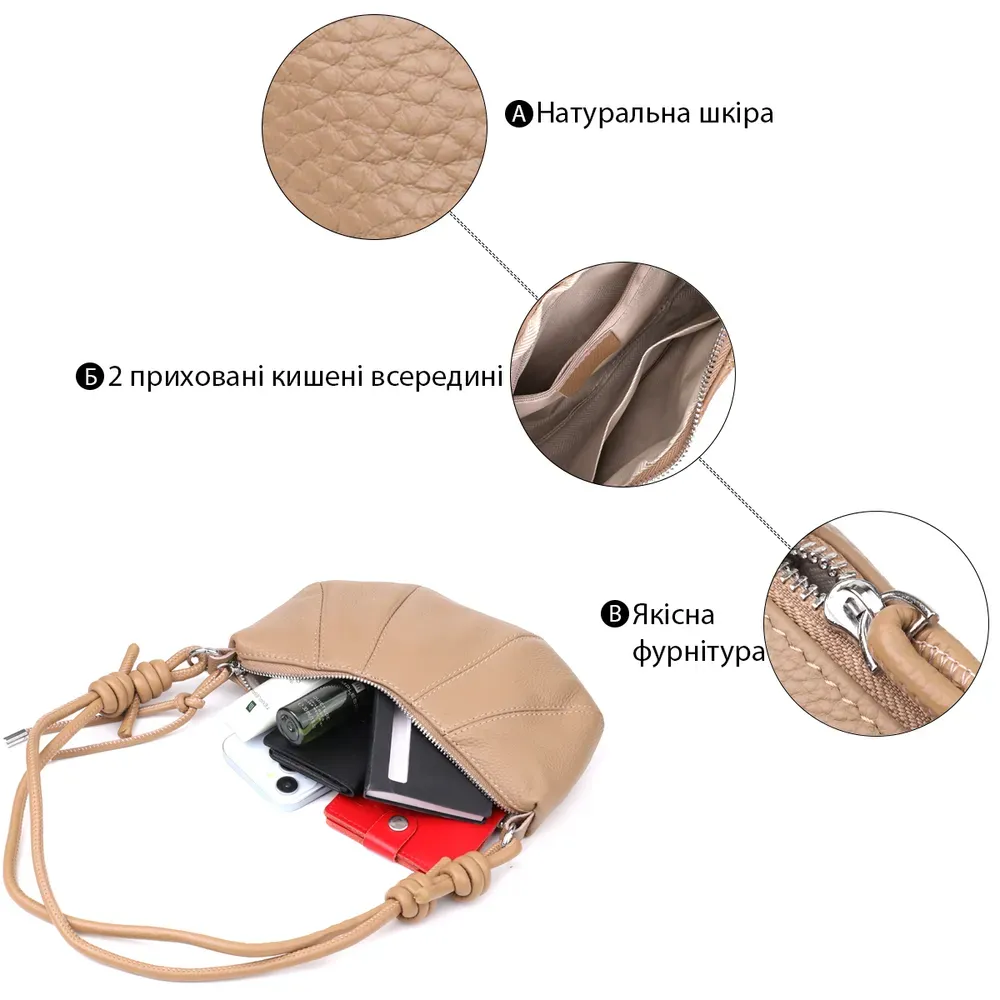 Бежева шкіряна сумка з ремінцем-мотузкою - відмінний вибір для тих, хто цінує легкість, стиль та функціональність у повсякденних аксесуарах.