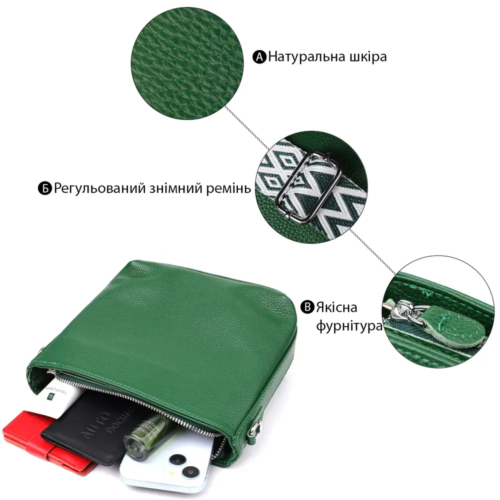 Зелена шкіряна сумка - ідеальний вибір для тих, хто цінує оригінальність, функціональність та стиль в одному аксесуарі.