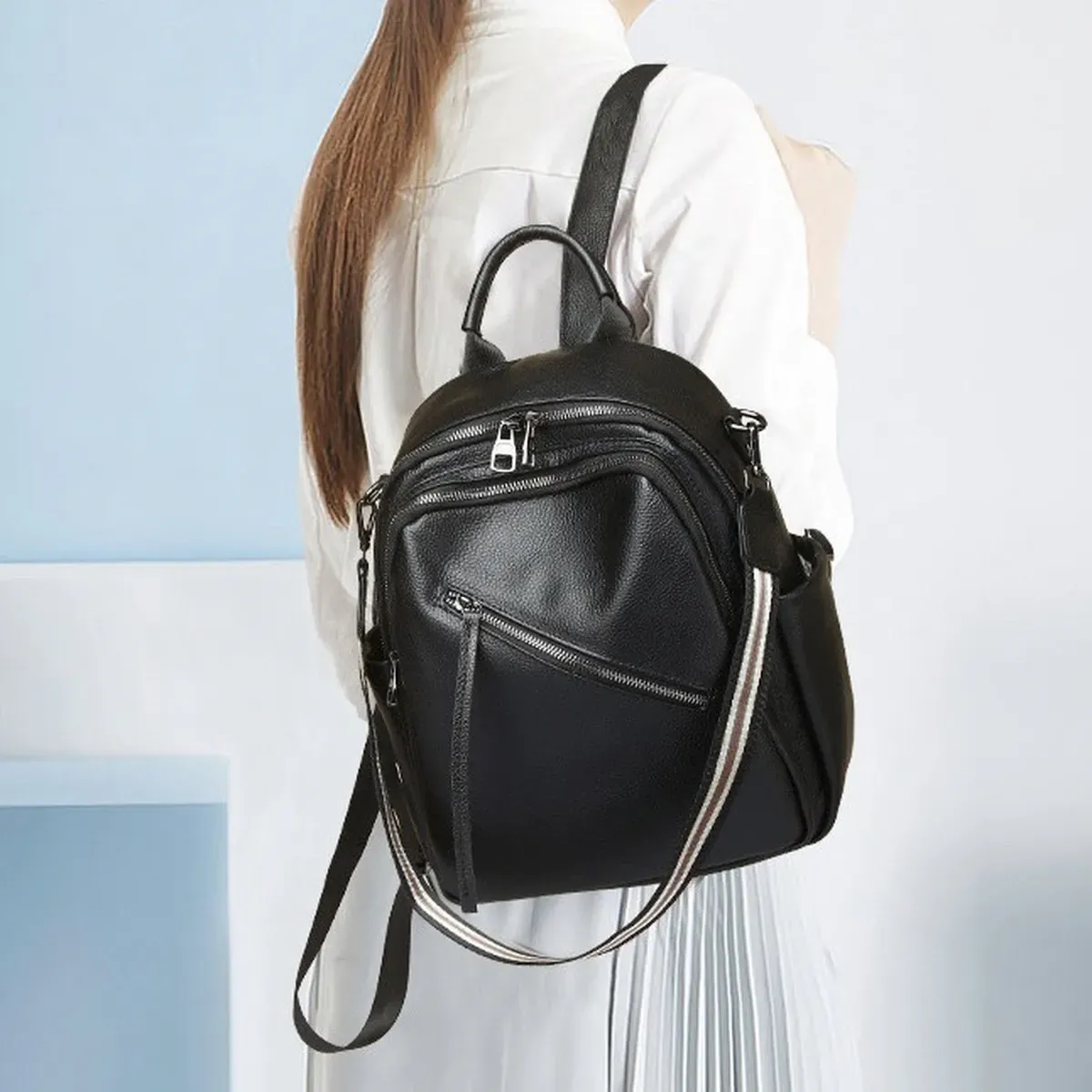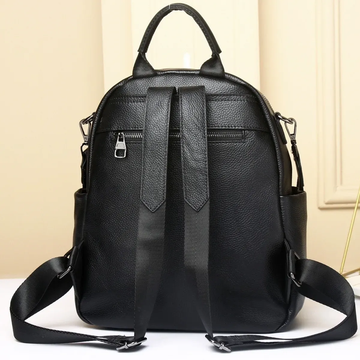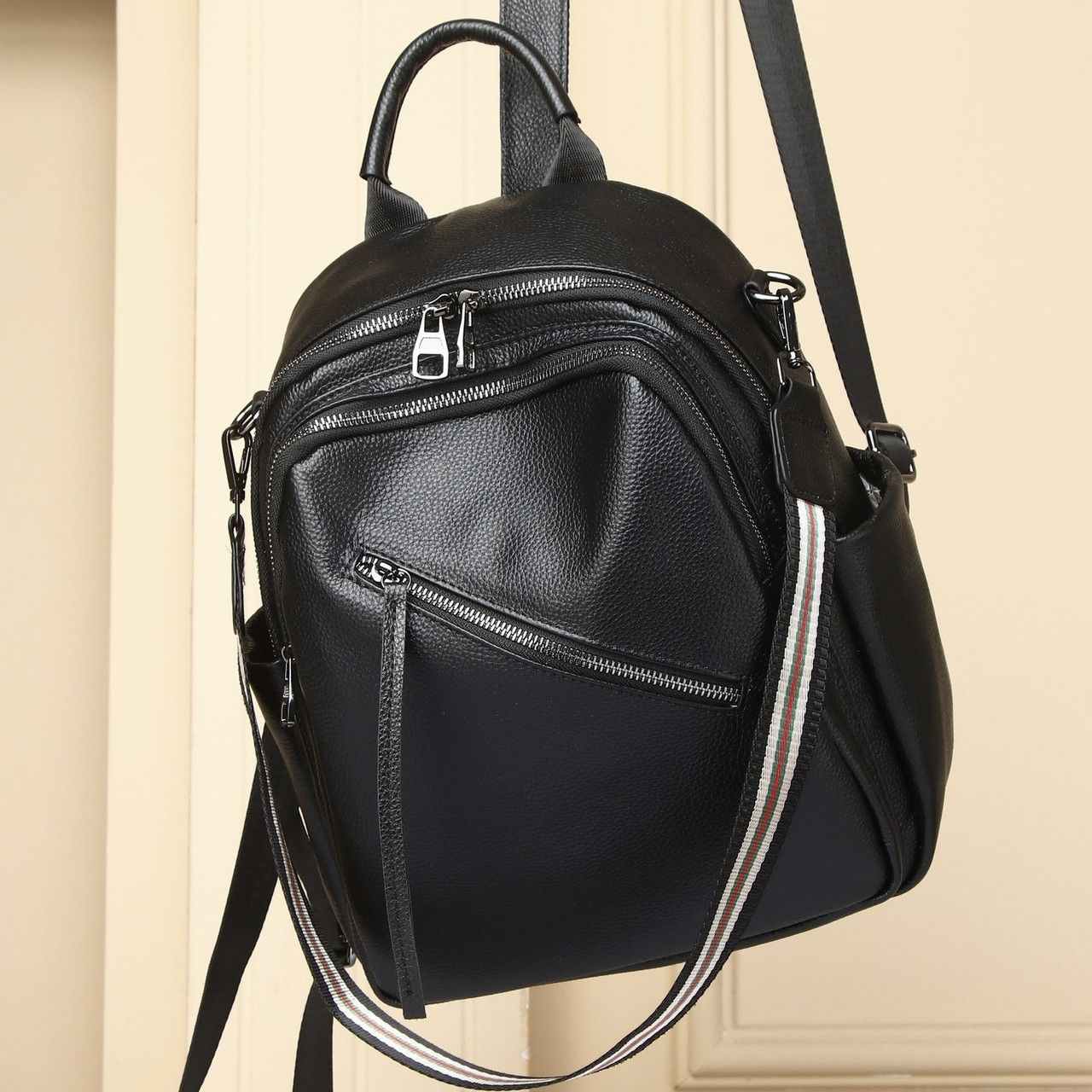 Стильний аксесуар для дівчат і жінок, необхідний для повсякденного життя, яка стає динамічнішою, активнішою та швидкіснішою. У такий практичний і функціональний рюкзак дасть змогу розмістити багато різноманітних речей. Виготовлений із натуральної шкіри, у практичному чорному кольорі, який буде доречний у будь-якій колірній гамі гардероба. Вміщує документи формату А5.