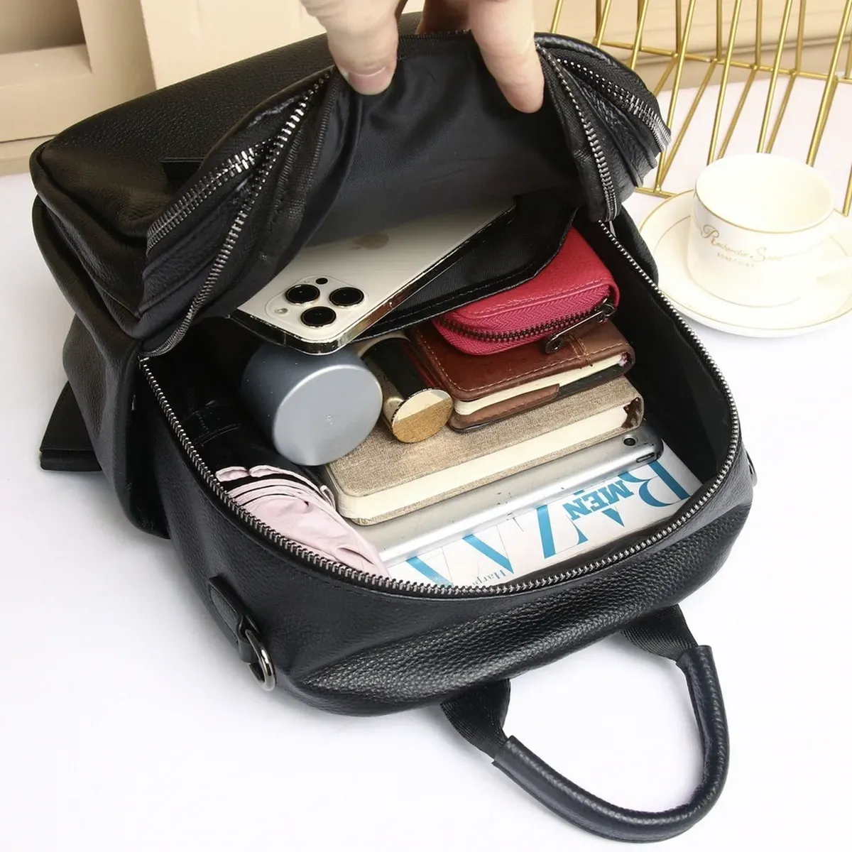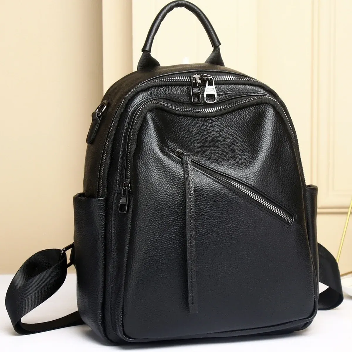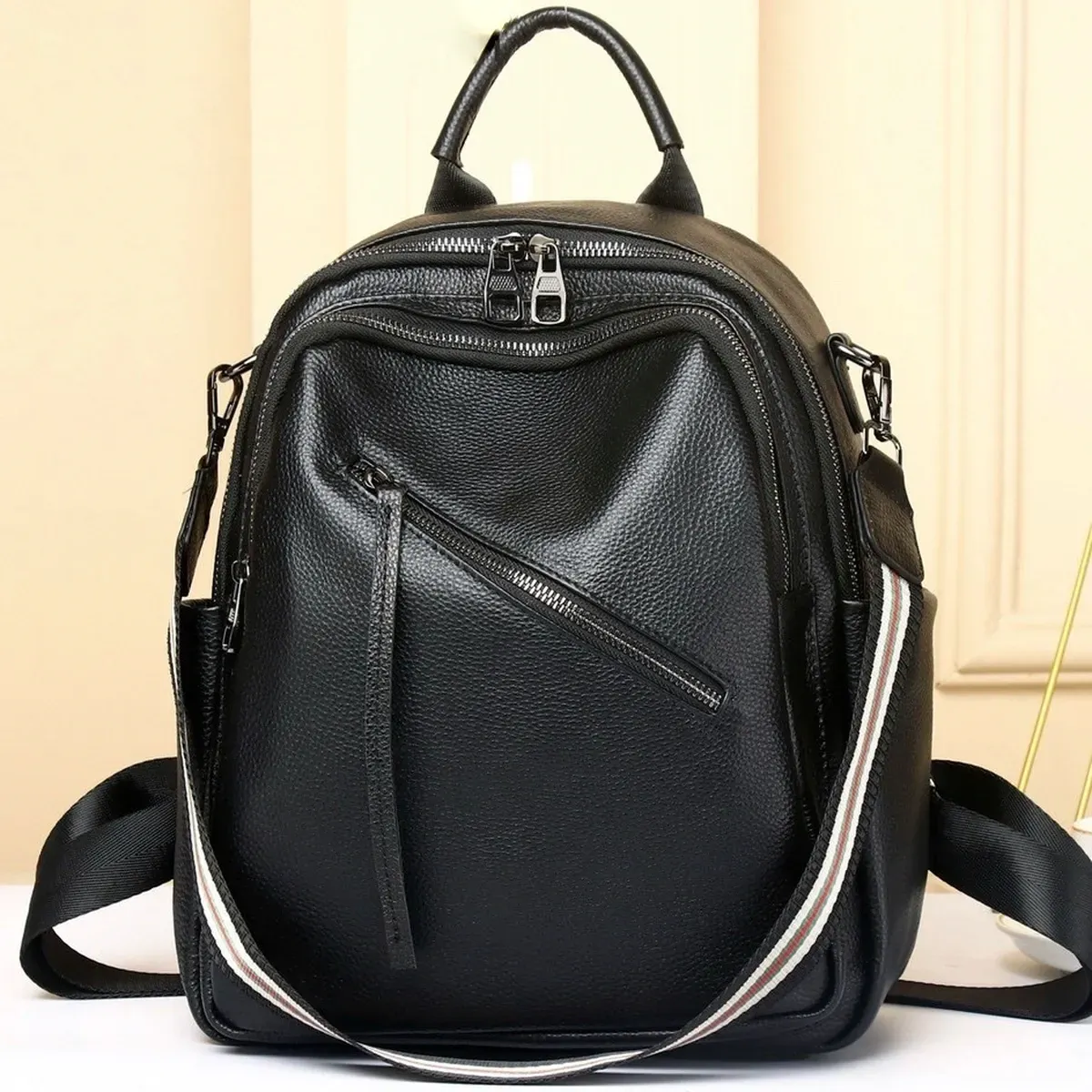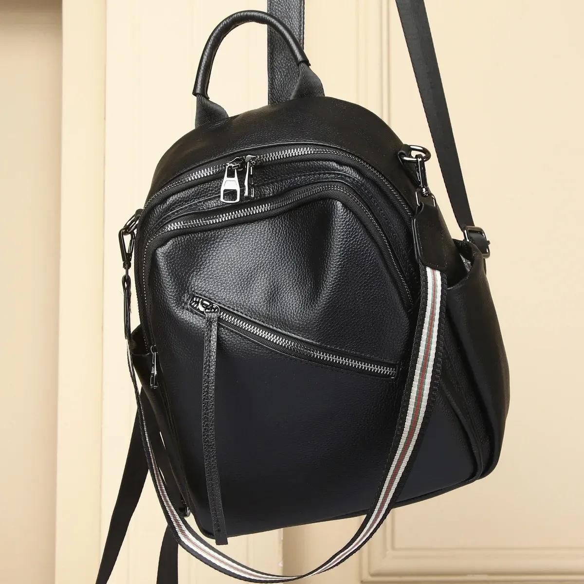 Стильний аксесуар для дівчат і жінок, необхідний для повсякденного життя, яка стає динамічнішою, активнішою та швидкіснішою. У такий практичний і функціональний рюкзак дасть змогу розмістити багато різноманітних речей. Виготовлений із натуральної шкіри, у практичному чорному кольорі, який буде доречний у будь-якій колірній гамі гардероба. Вміщує документи формату А5.