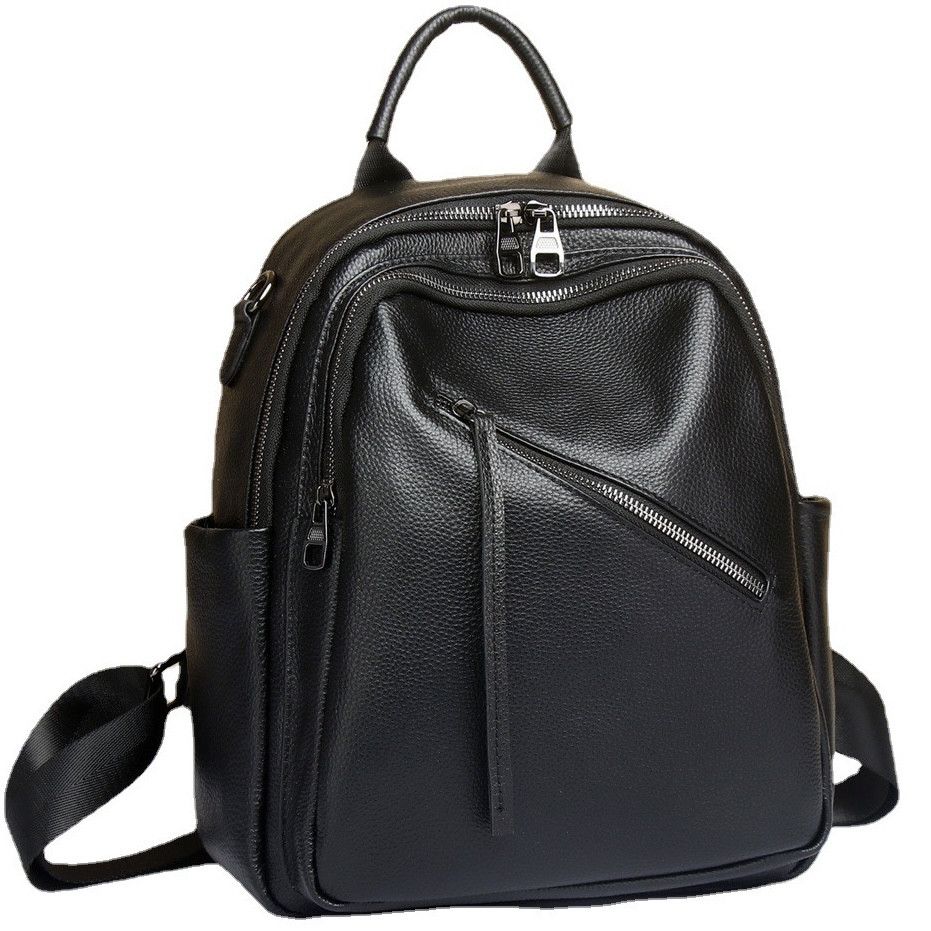 Стильна жіноча сумка міська на плечі 25х33х14, рюкзак з натуральної шкіри, чорний