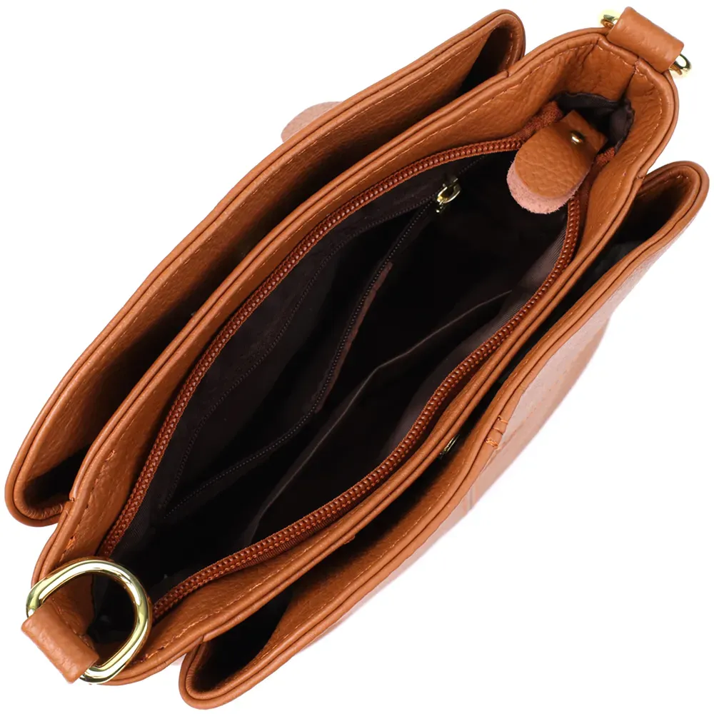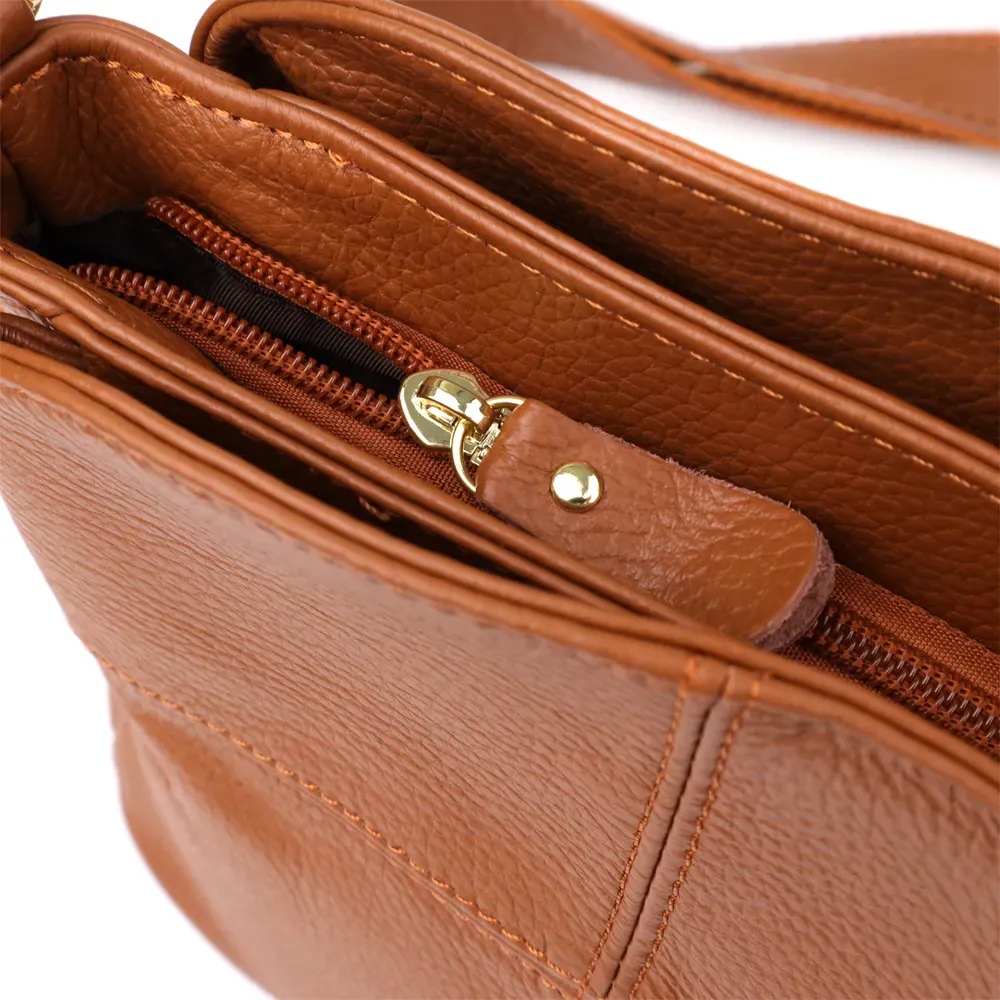Стильна жіноча сумка на три відділення з натуральної шкіри Vintage 22975 Рудий