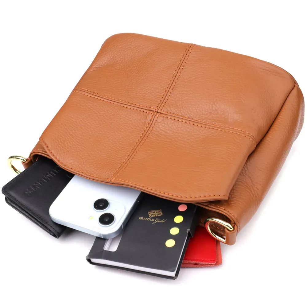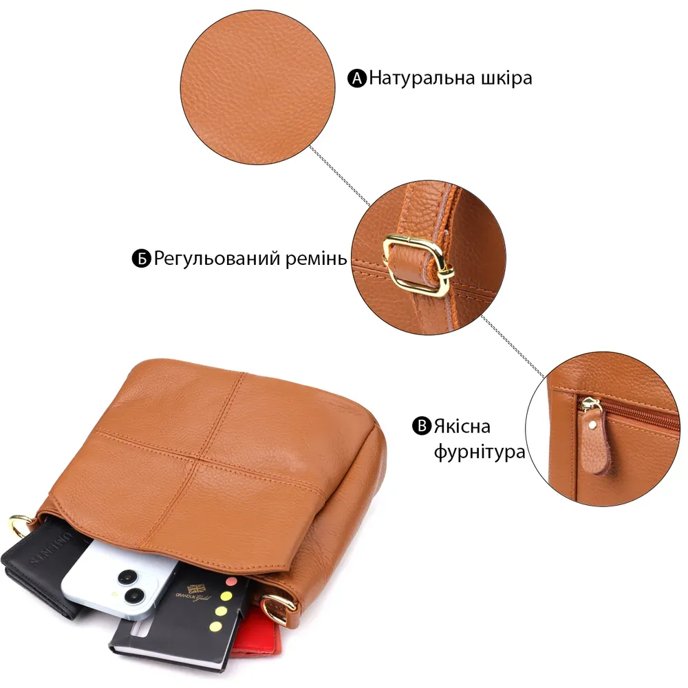 Ця руда шкіряна сумка - універсальне рішення для жінки, яка цінує комфорт, натуральні відтінки і виразний стиль, що не кричить.