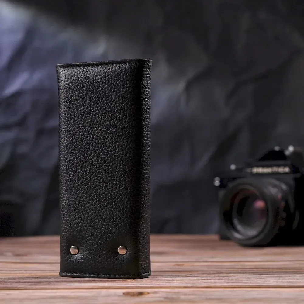 Практична ключниця з натуральної шкіри в класичному чорному кольорі. Всі матеріали, з яких виконано виріб шкіра, фурнітура - високої якості з підвищеними показниками стійкості до зносу. Аксесуар упакований у фірмову коробку. Шкіряний виріб стане чудовим подарунком для будь-якої жінки.