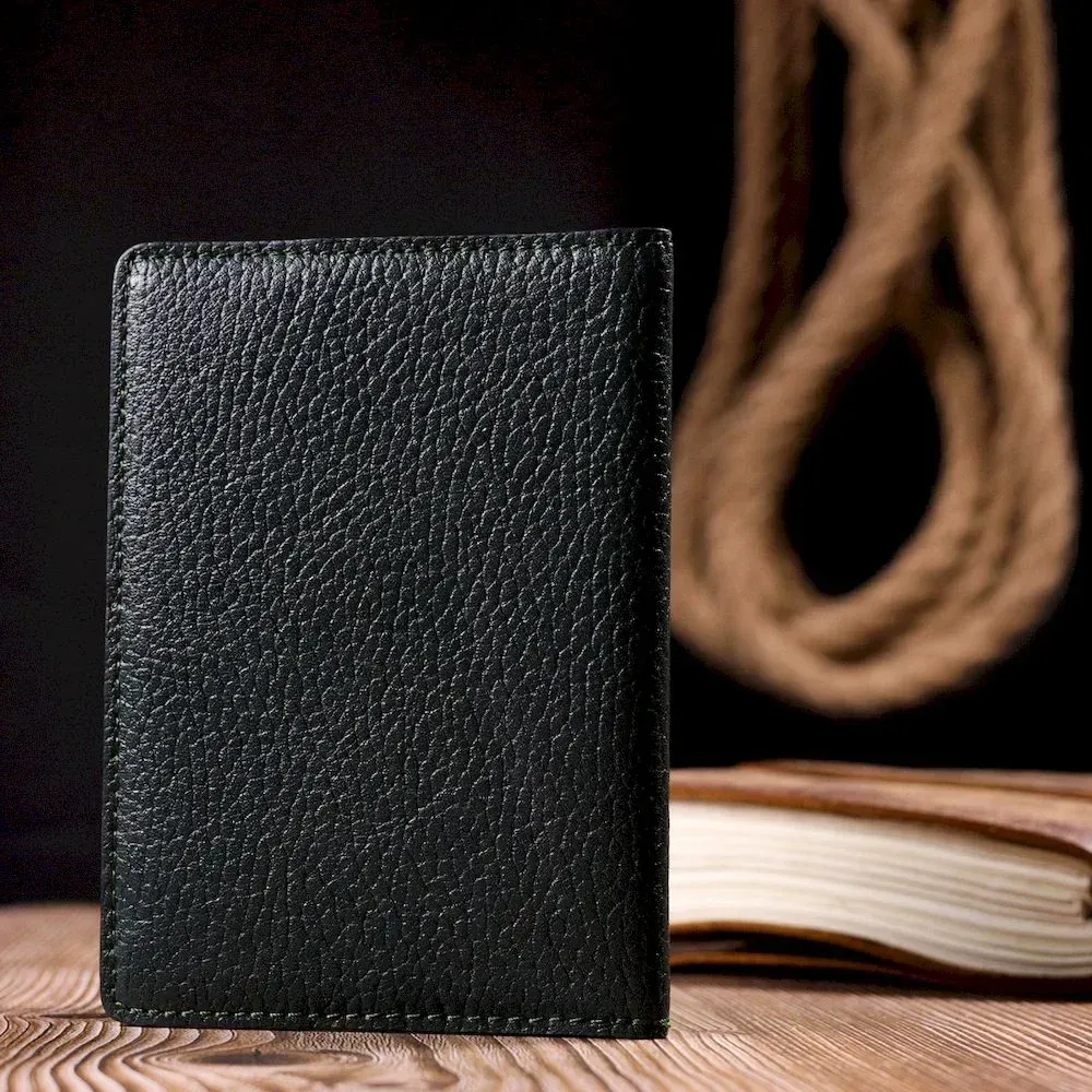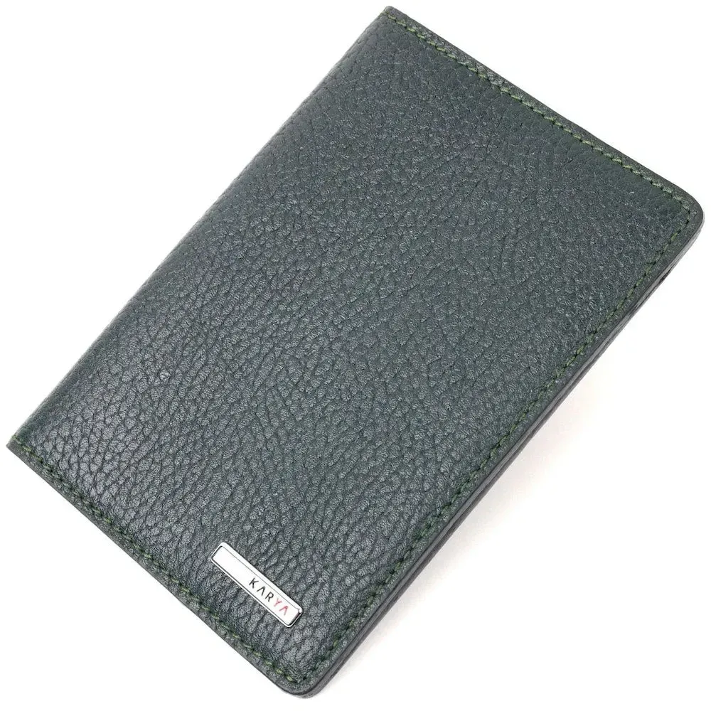 Стильна обкладинка на паспорт із зернистої шкіри KARYA 20918 Зелений