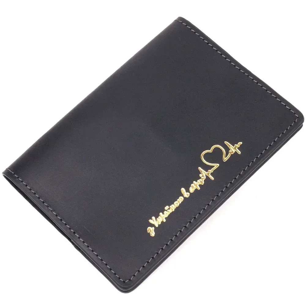Стильна обкладинка на паспорт у вінтажній шкірі Серце GRANDE PELLE 16723 Чорна