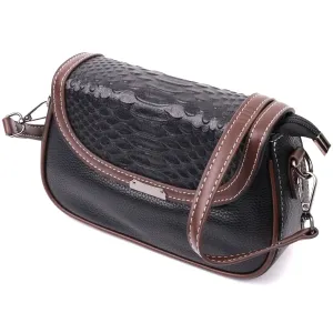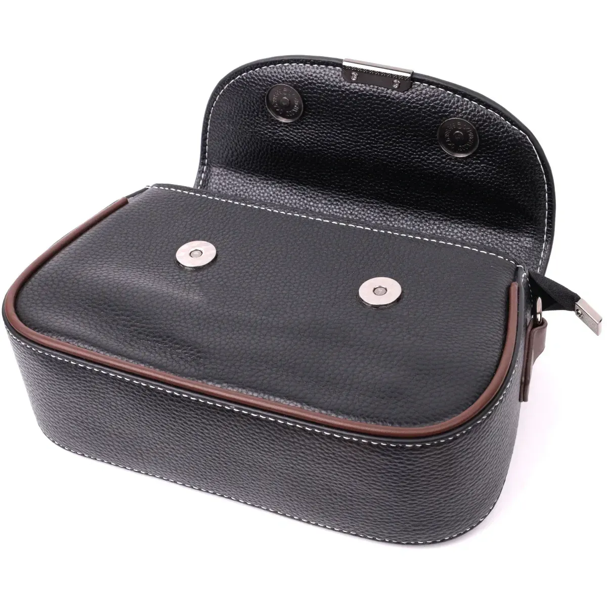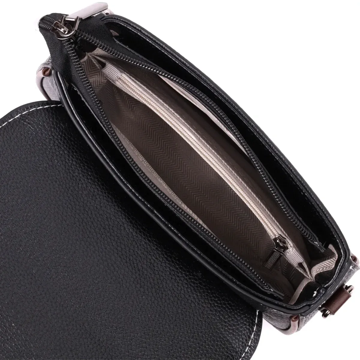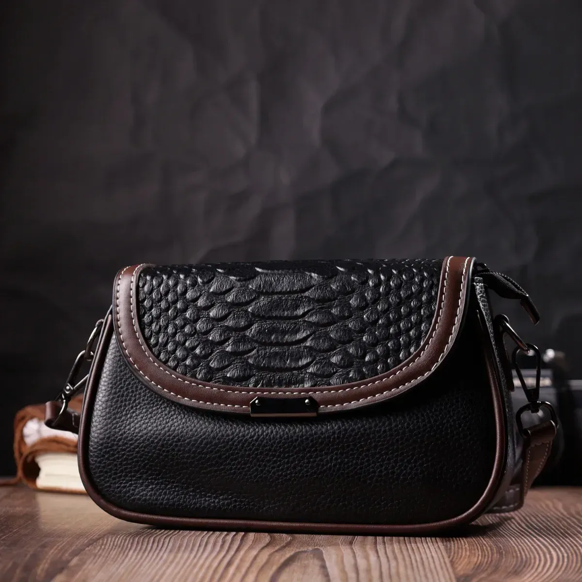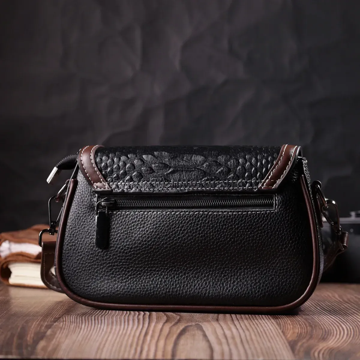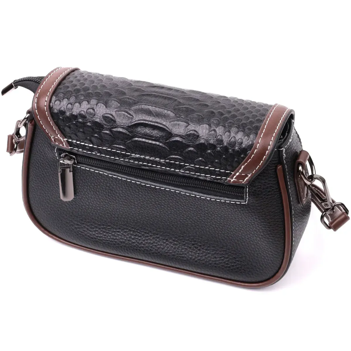 Стильна сумка для жінок з фактурним клапаном із натуральної шкіри Vintage 22374 Чорна
