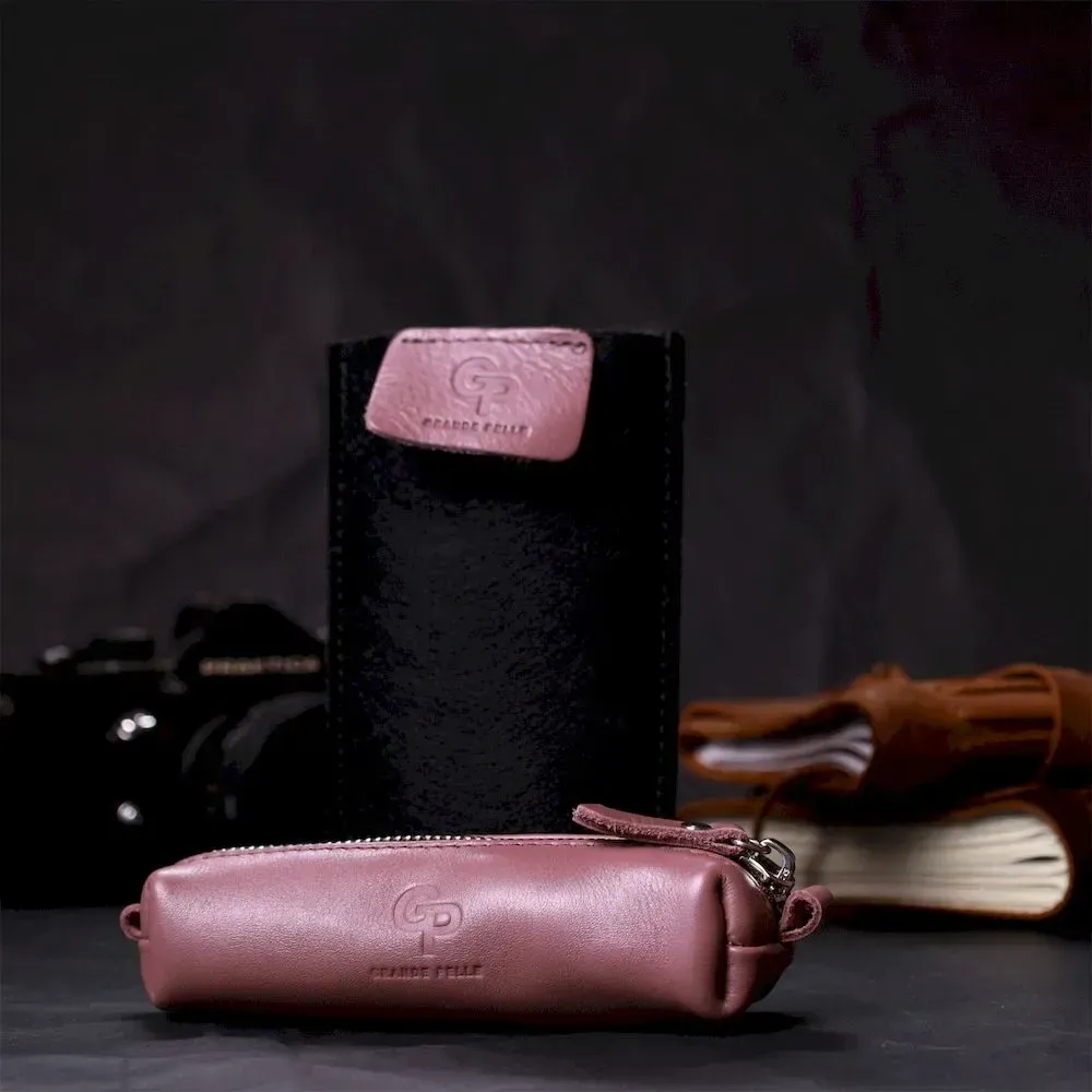 Стильна жіноча шкіряна ключниця GRANDE PELLE 16791 Пудровий