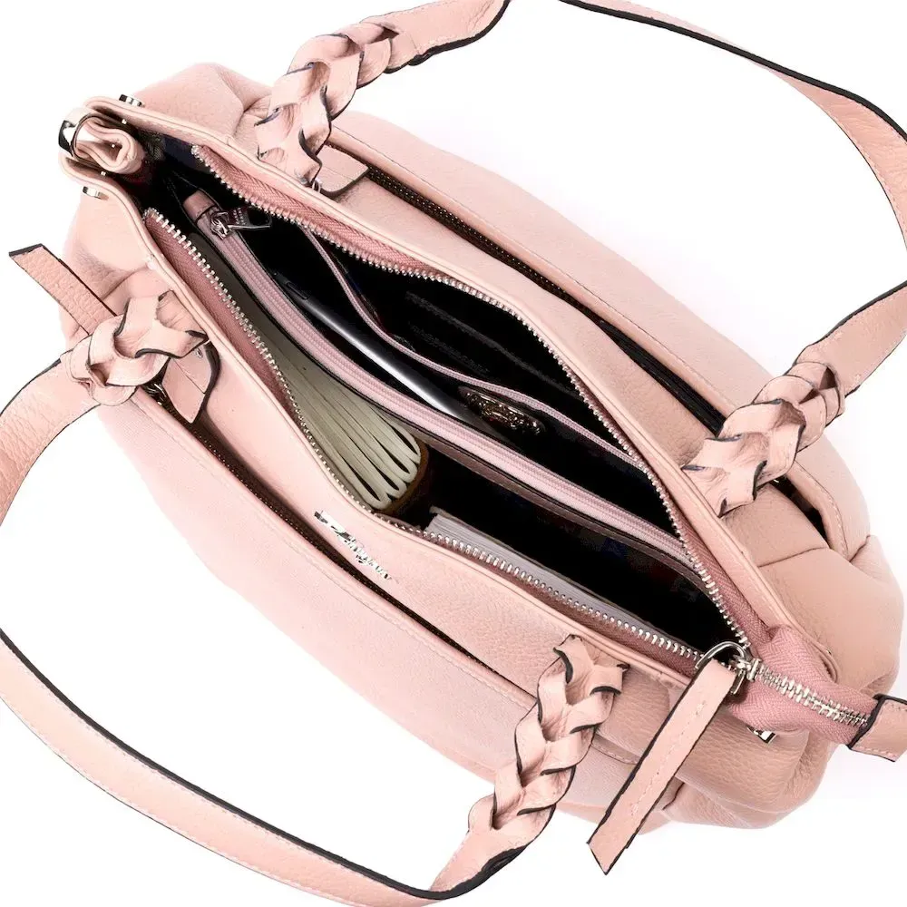 Стильна сумка жіноча з ручками KARYA 20861 шкіряна Пудровий