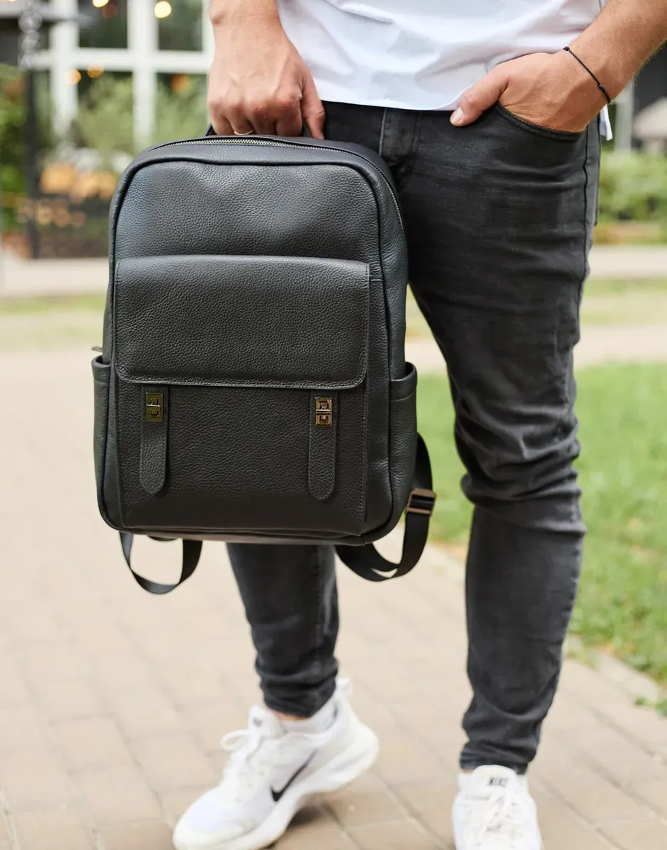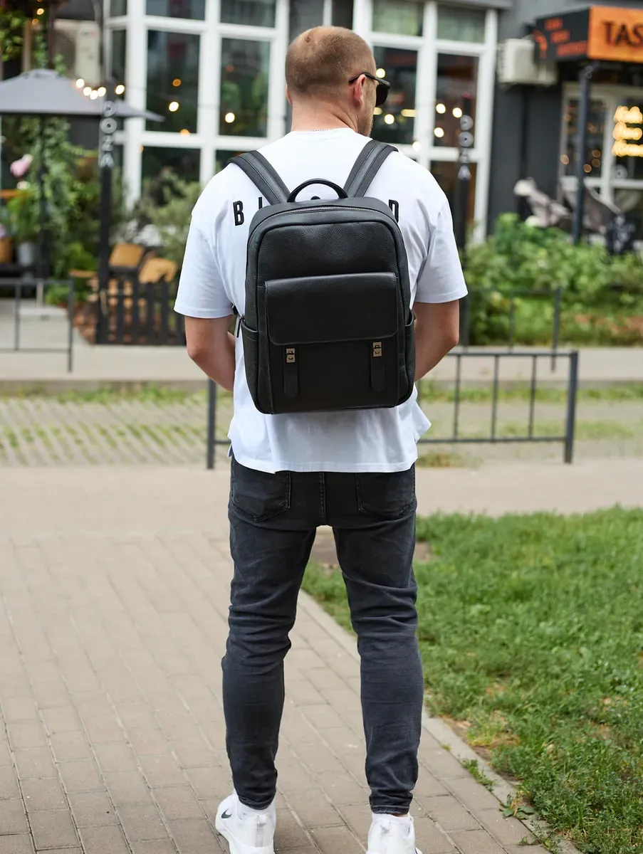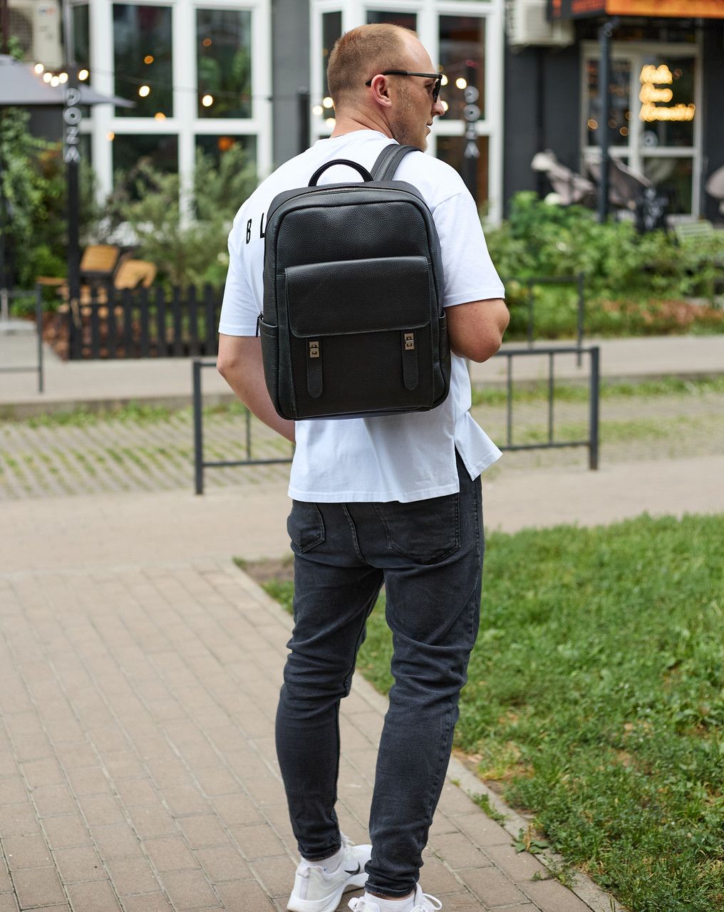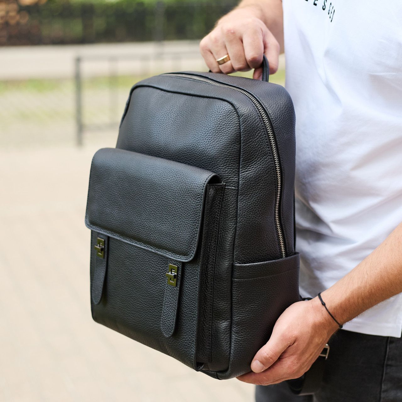 Стильний чоловічий шкіряний рюкзак 40х30х17, практичний аксесуар для ноутбука та документів, чорний