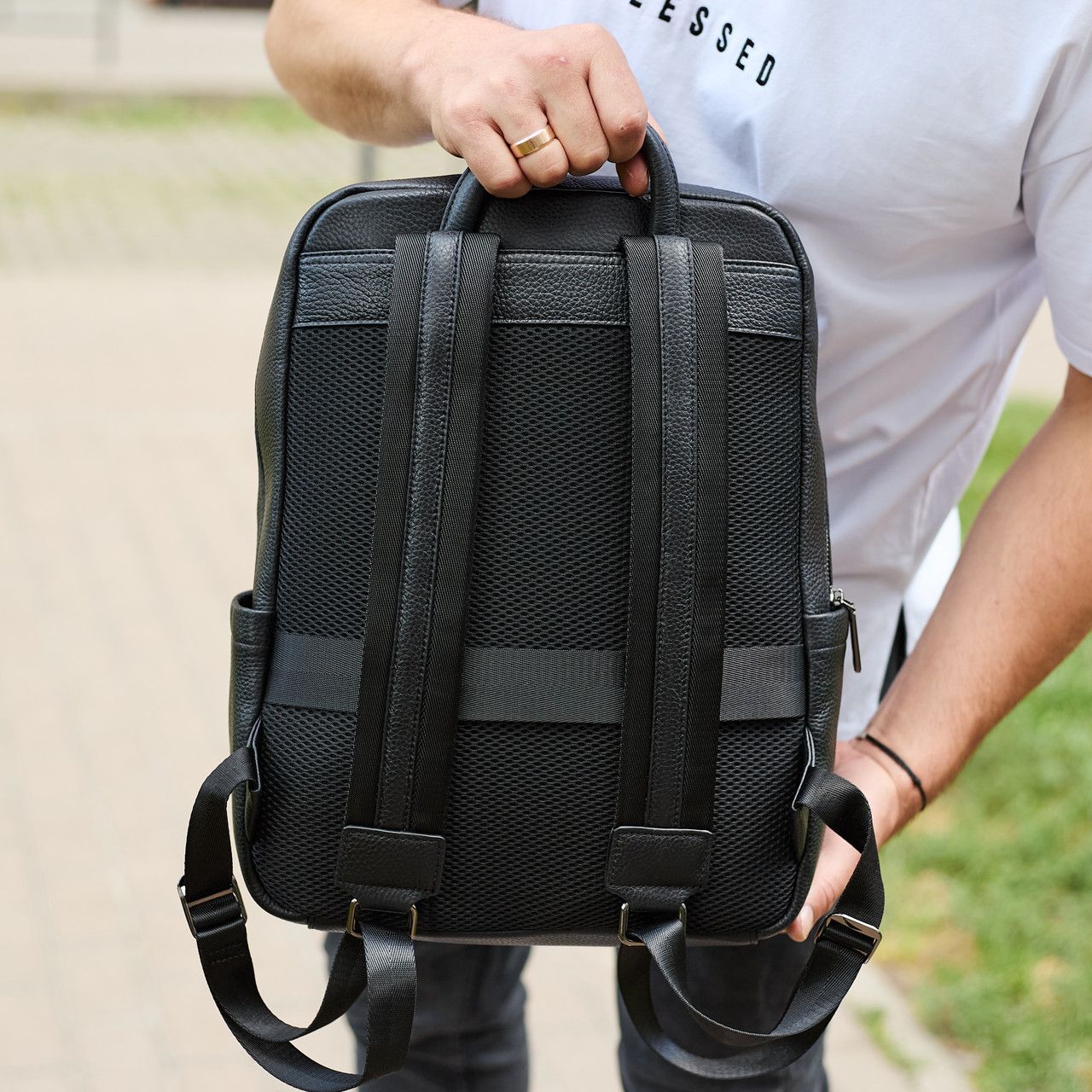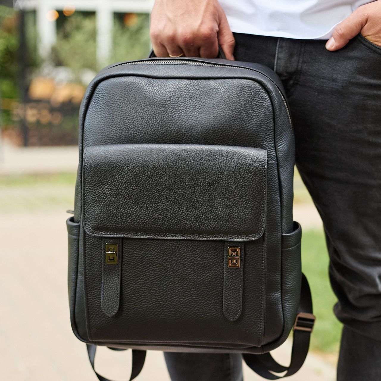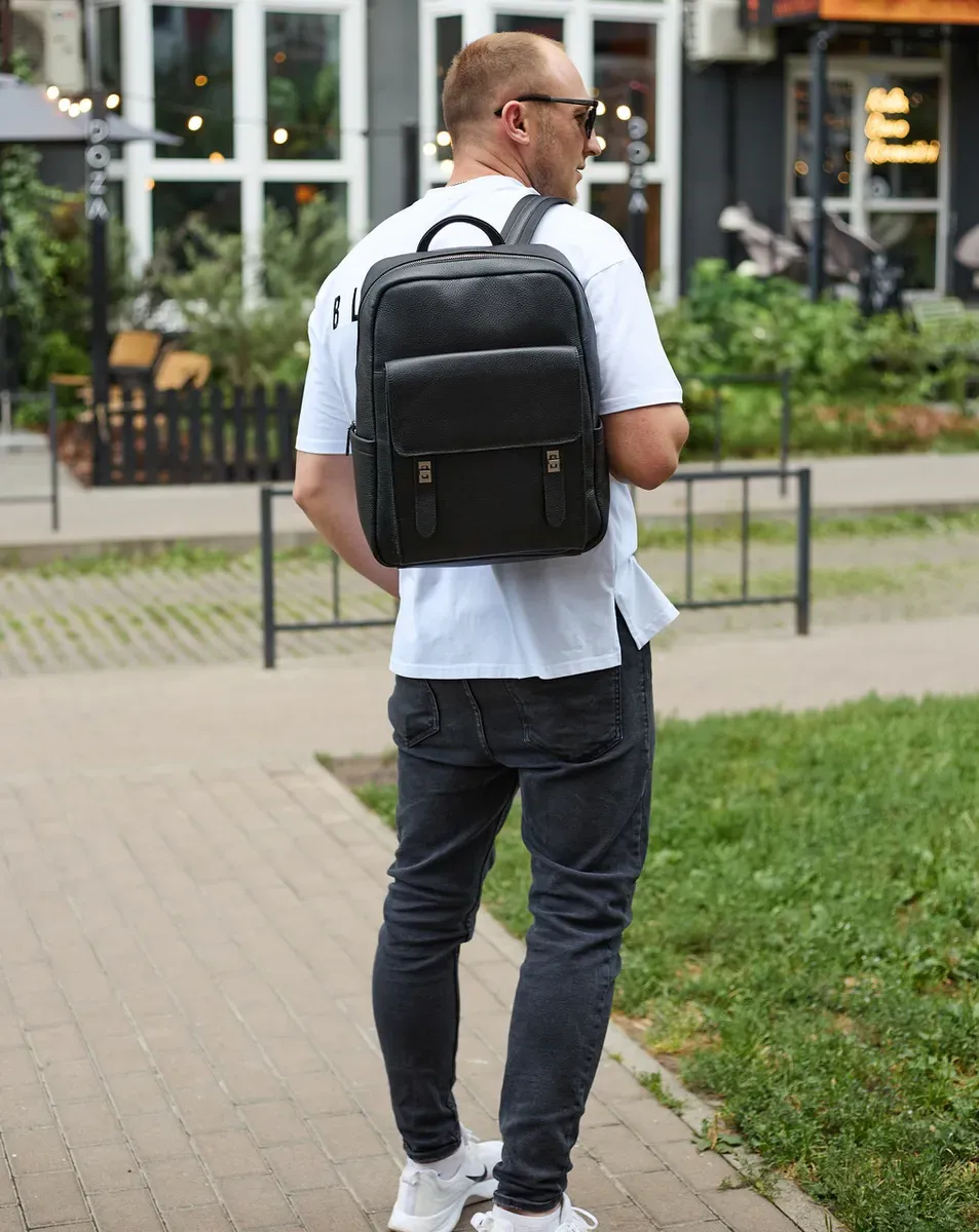 Стильний чоловічий шкіряний рюкзак 40х30х17, практичний аксесуар для ноутбука та документів, чорний