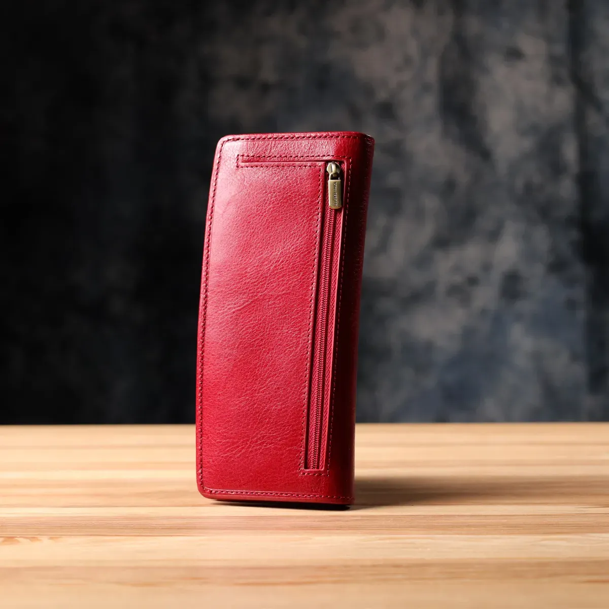 Містке жіноче класичне портмоне Tony Perotti у насиченому червоному кольорі поєднує елегантний зовнішній вигляд та продуману функціональність. Просторі відділення дозволяють зручно розмістити купюри, карти та документи, а зовнішня кишеня на блискавці забезпечує швидкий доступ до дрібниць. Брендована фурнітура, фірмова картата підкладка та тиснений логотип підкреслюють преміальну якість та стиль аксесуара.