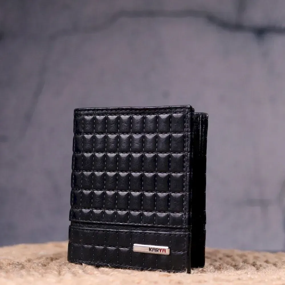 Стильне портмоне для чоловіків із фактурної натуральної шкіри KARYA 21321 Чорний