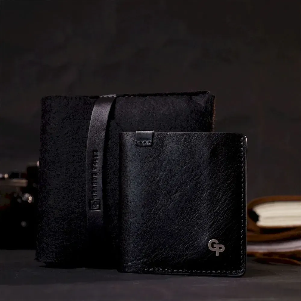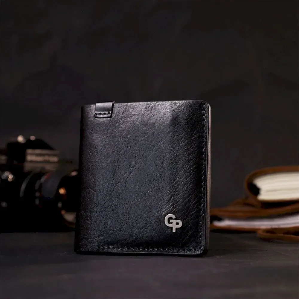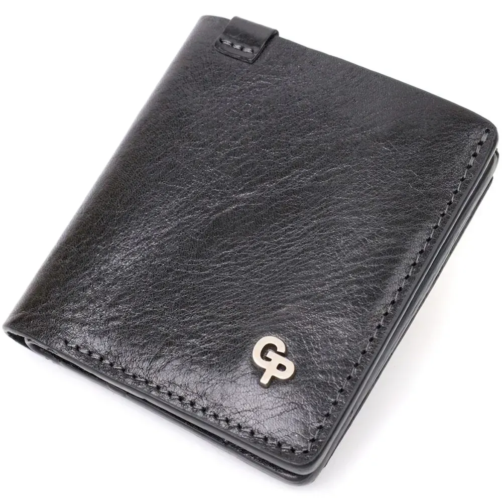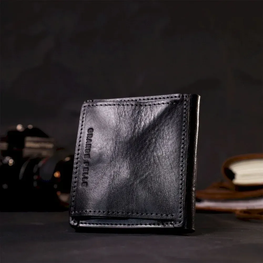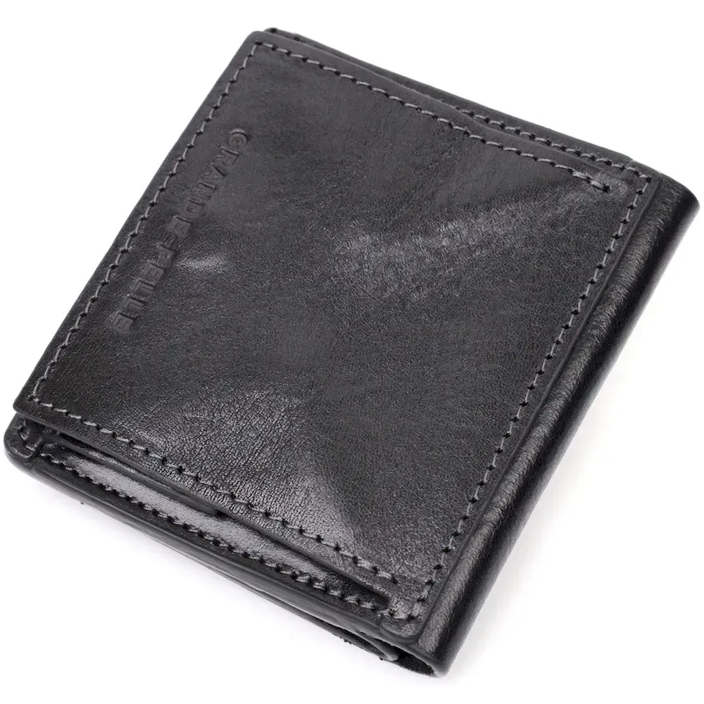 Стильне портмоне з накладною монетницею з натуральної шкіри GRANDE PELLE 11643 Чорний