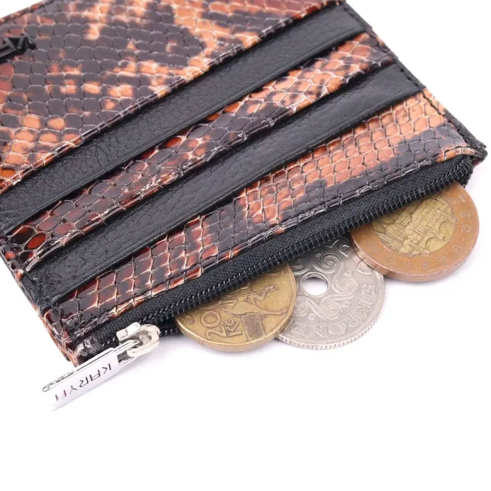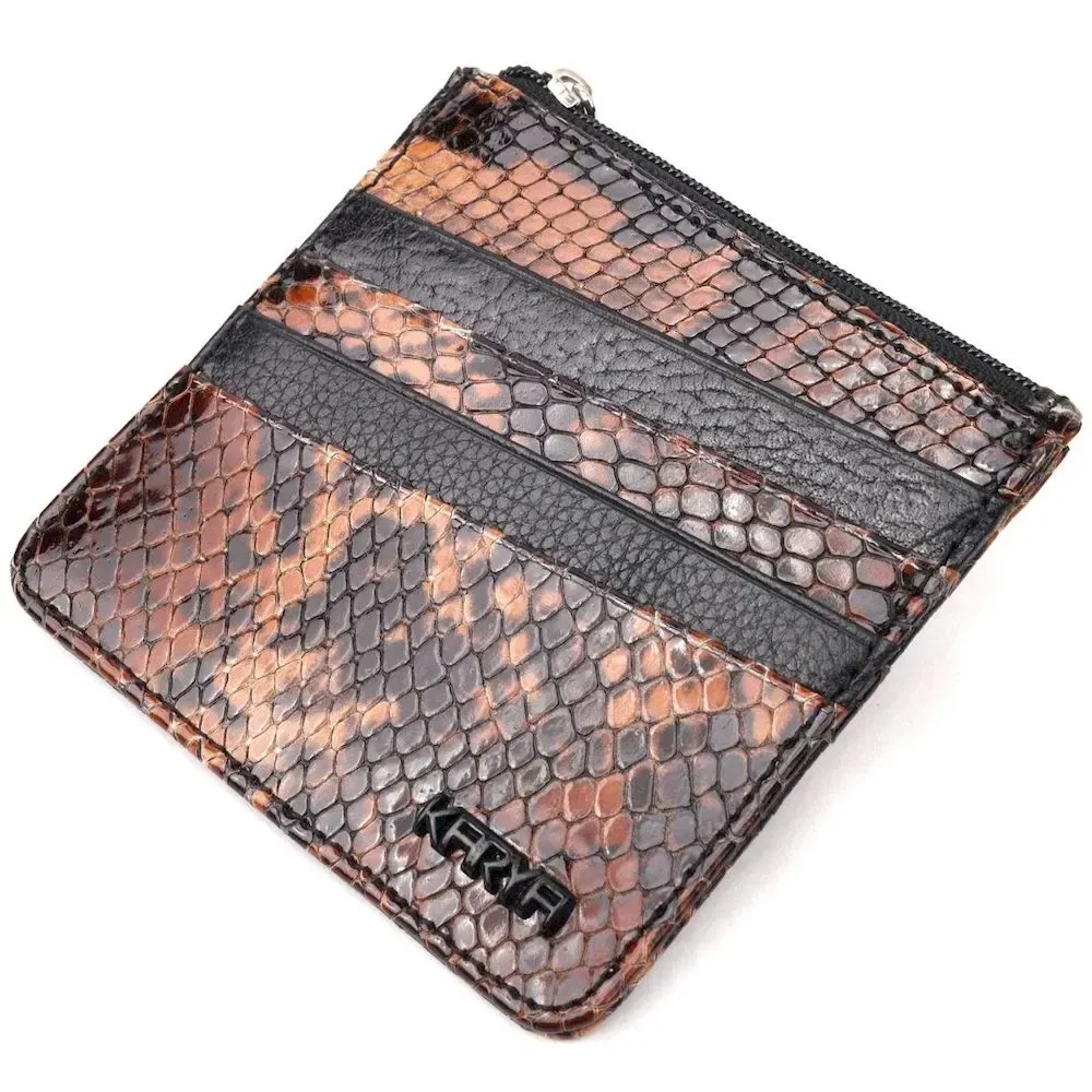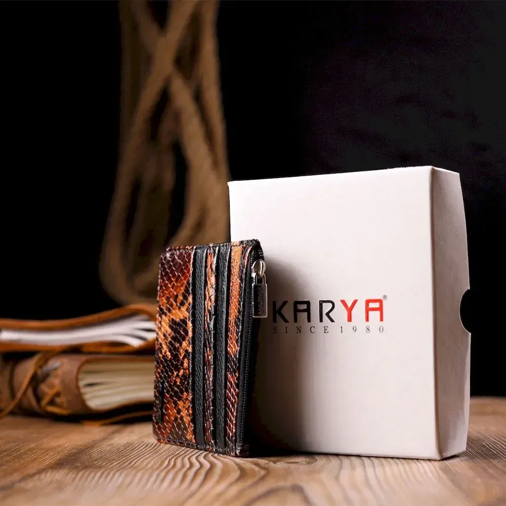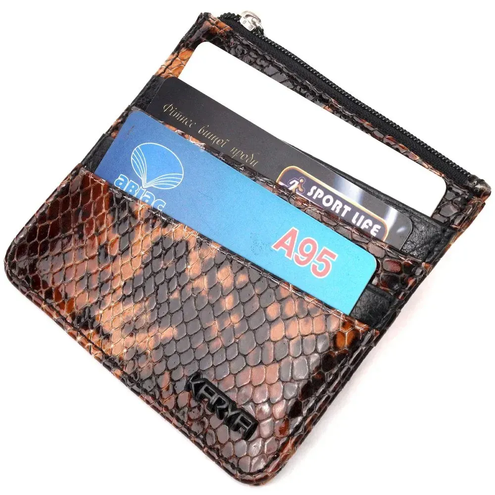 Стильний картхолдер із натуральної шкіри з тисненням під змію KARYA 21208 Різнокольоровий