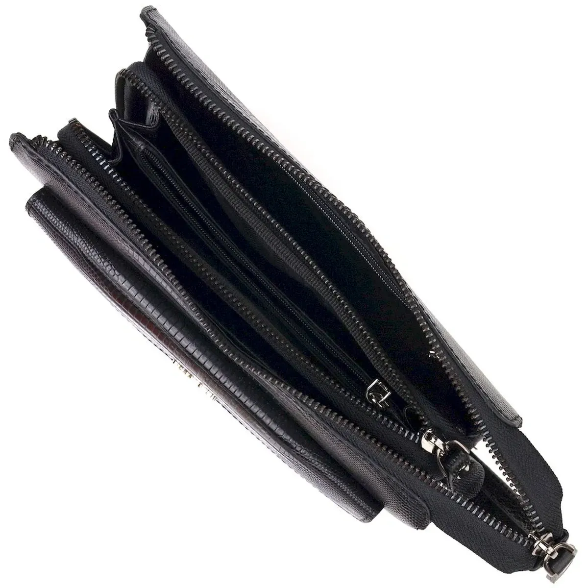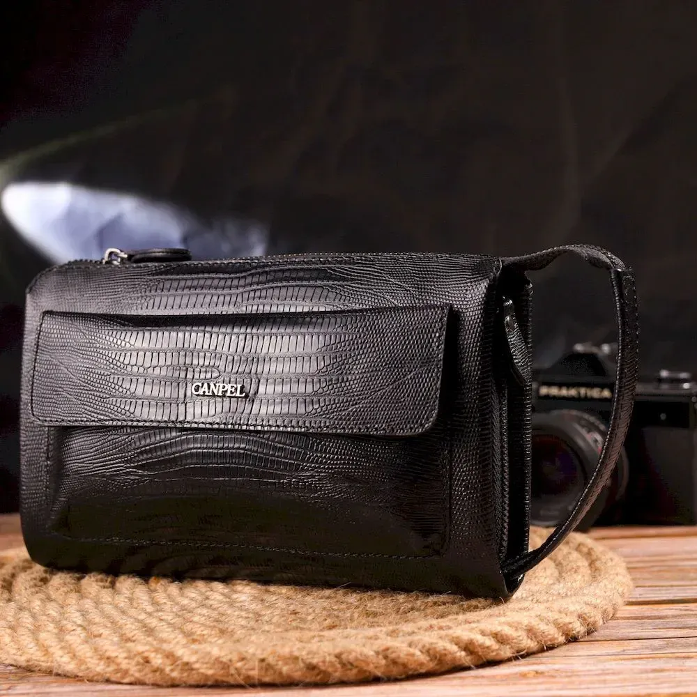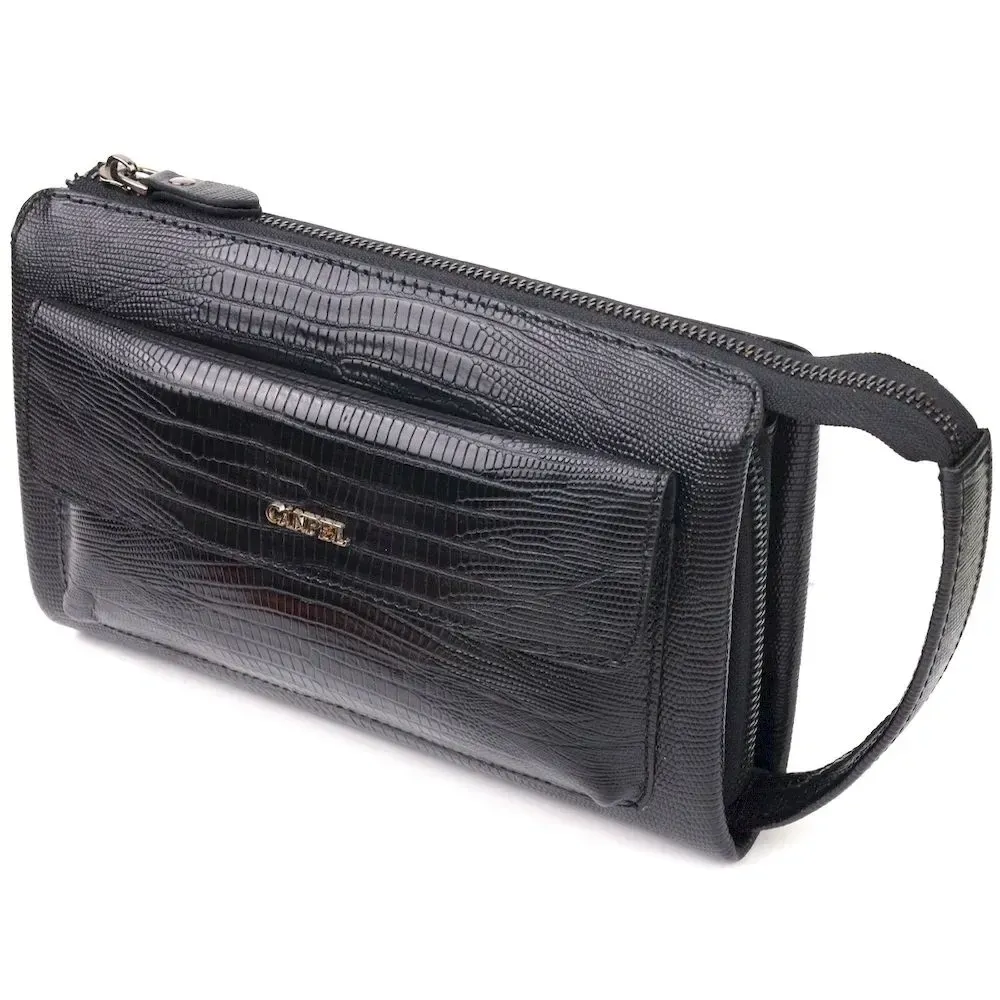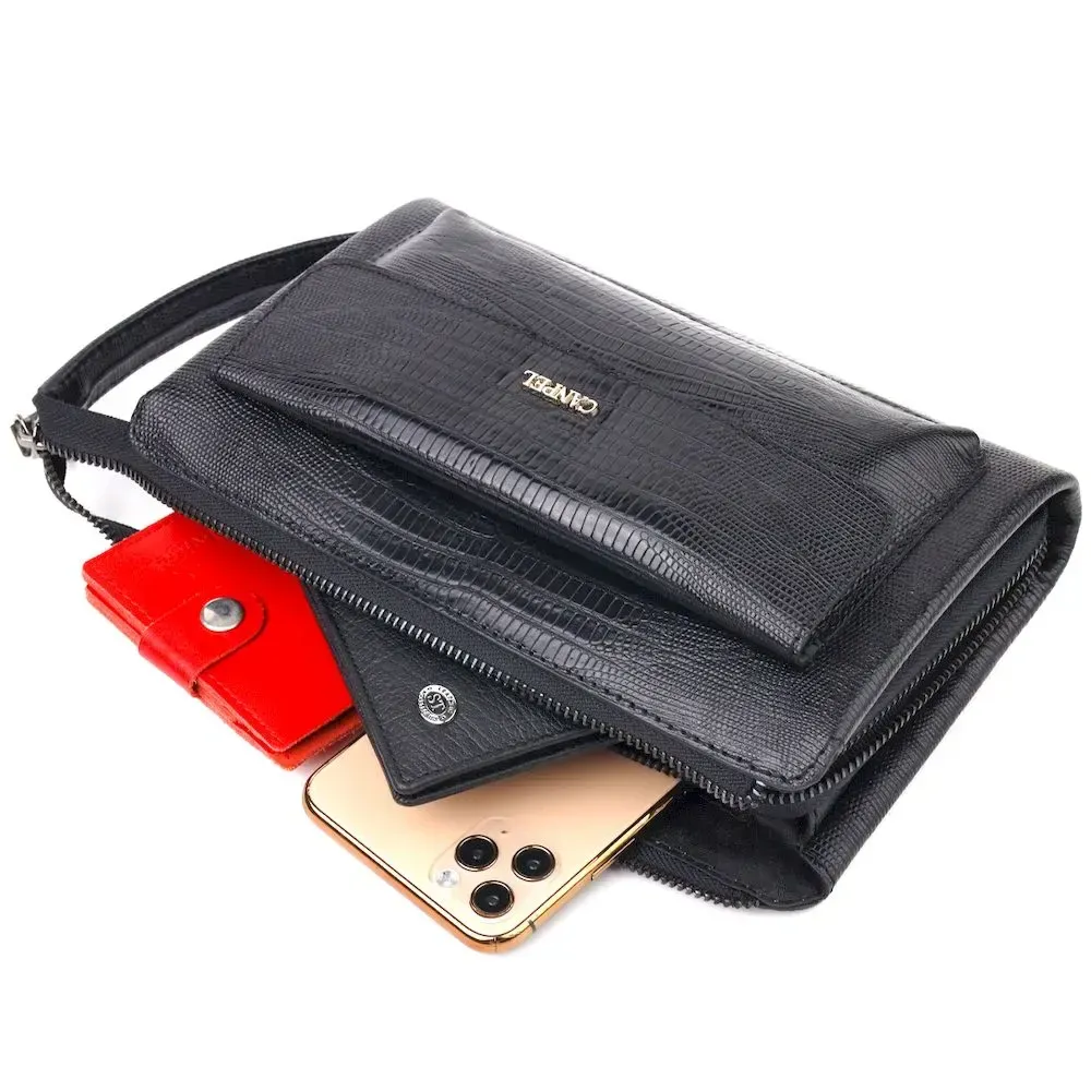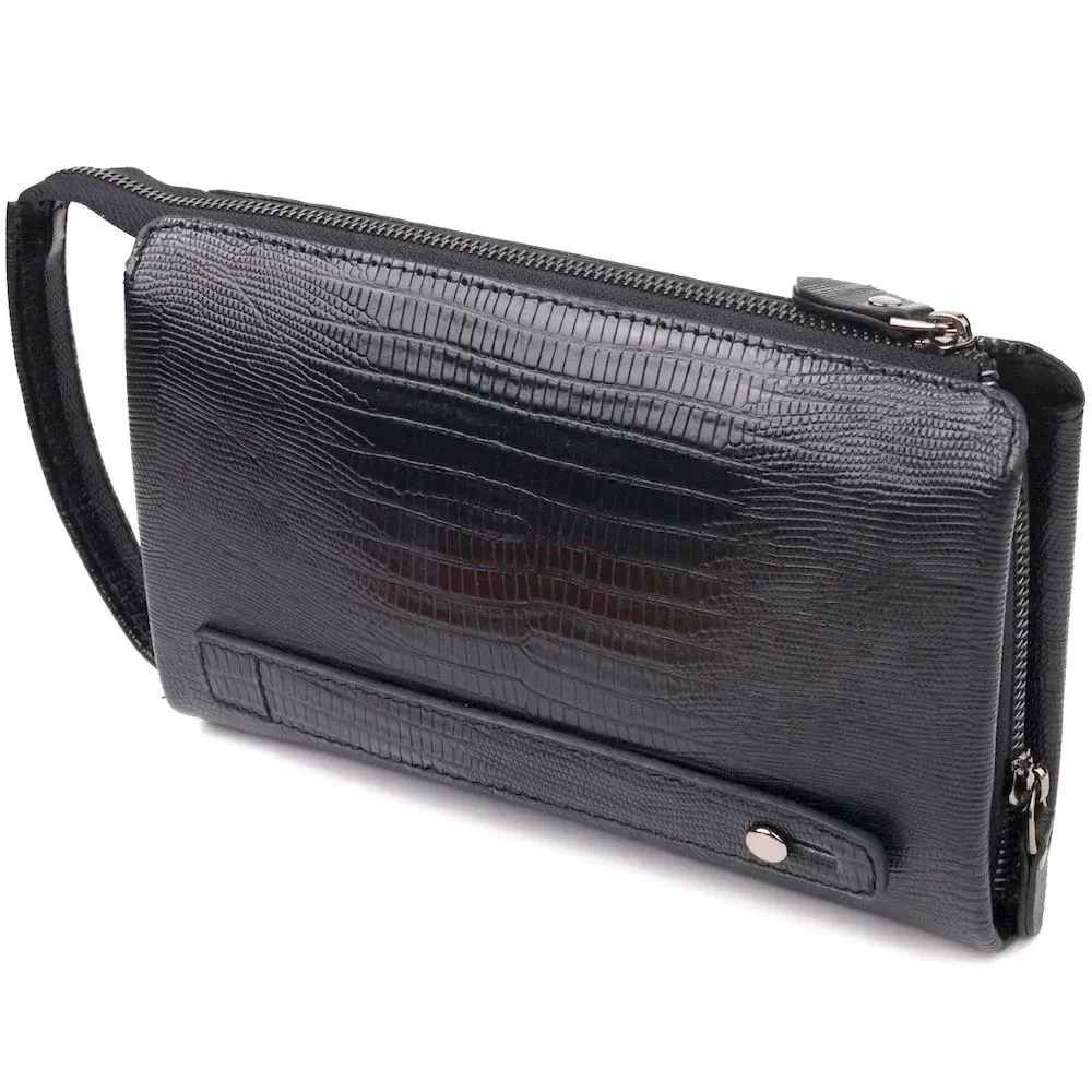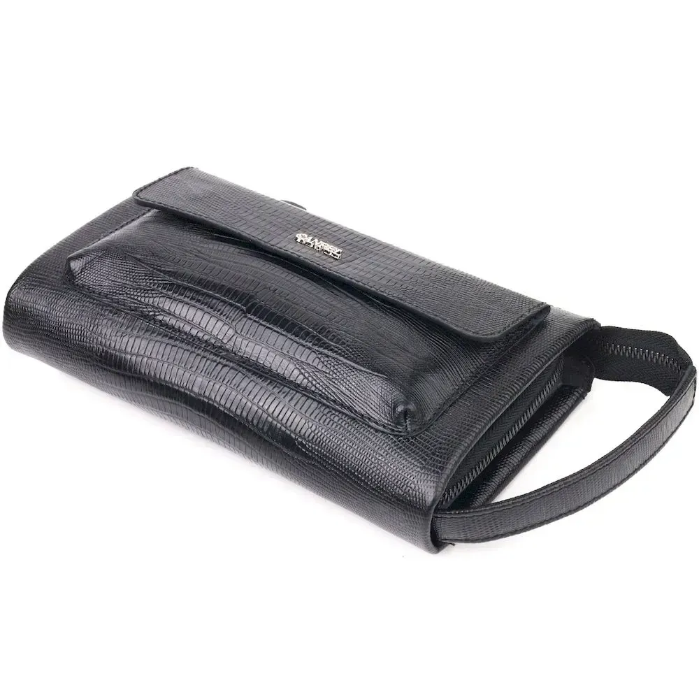 Стильний клатч для чоловіків із натуральної фактурної шкіри з тисненням під рептилію CANPELLINI 21563 Чорний