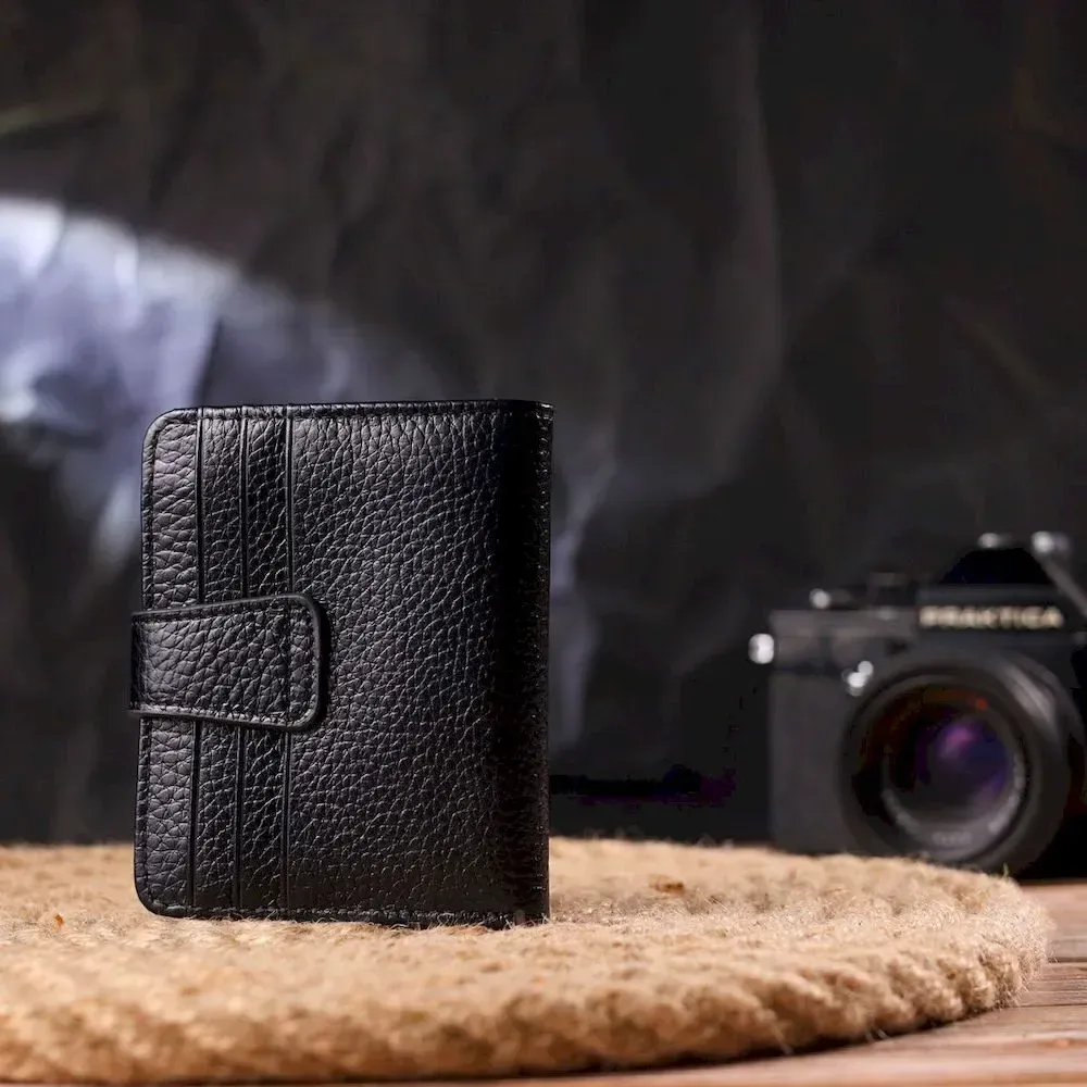 Оригінальний гаманець-картхолдер з натуральної зернистої шкіри. Аксесуар має відділення для купюр, приховану кишеню та п'ятнадцять відсіків для карток, два з них під сіточкою. Закривається аксесуар у дві додавання хлястиком на кнопку. Якісний шкіряний аксесуар завжди вважався показником смаку та достатку, саме такі вироби представлені у нашому магазині, у нас кожен знайде щось для себе.