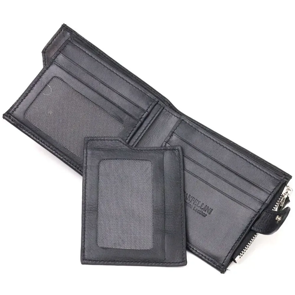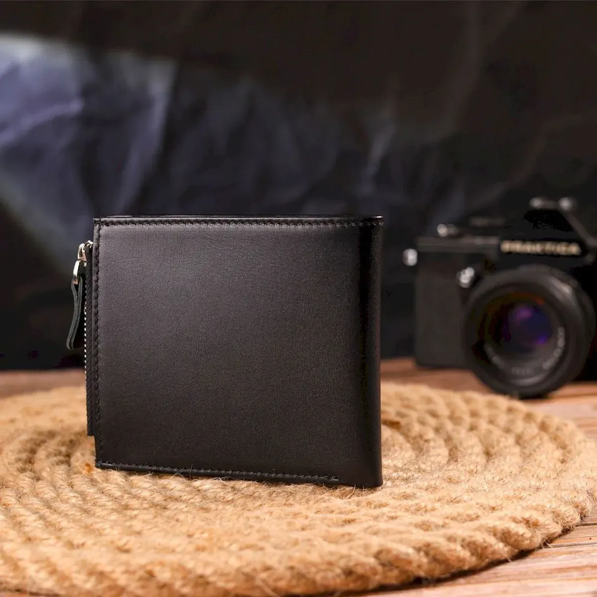 Стильний чоловічий горизонтальний гаманець із натуральної гладкої шкіри CANPELLINI 21505 Чорний