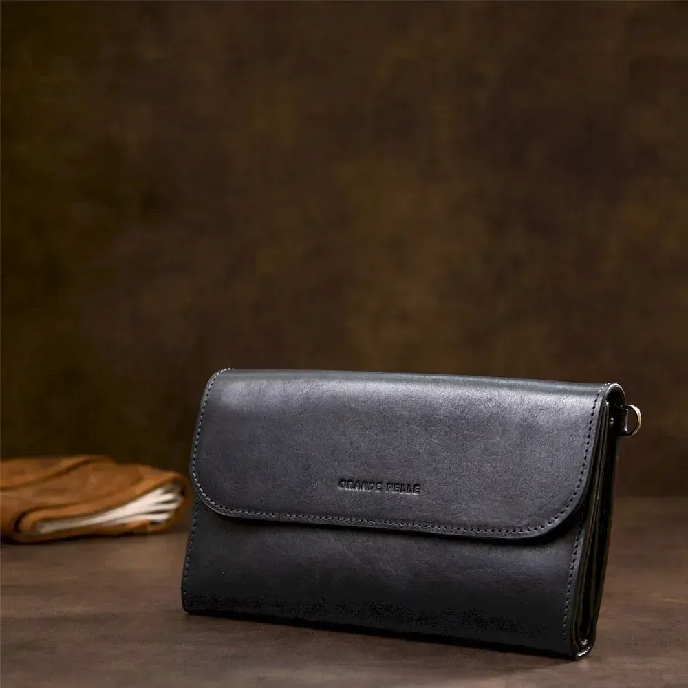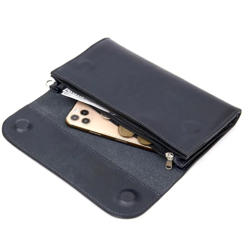 Стильний чоловічий клатч із натуральної шкіри GRANDE PELLE 11427 Темно-синій