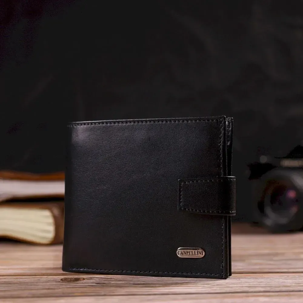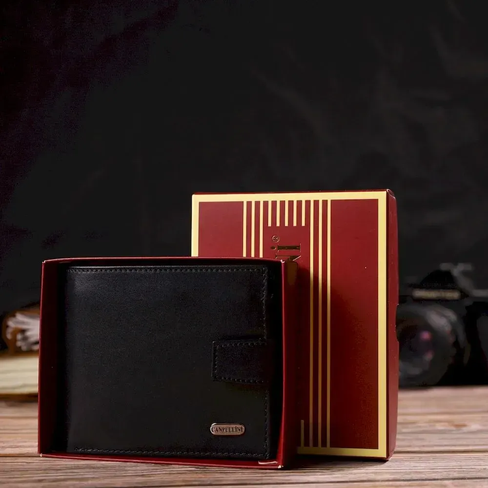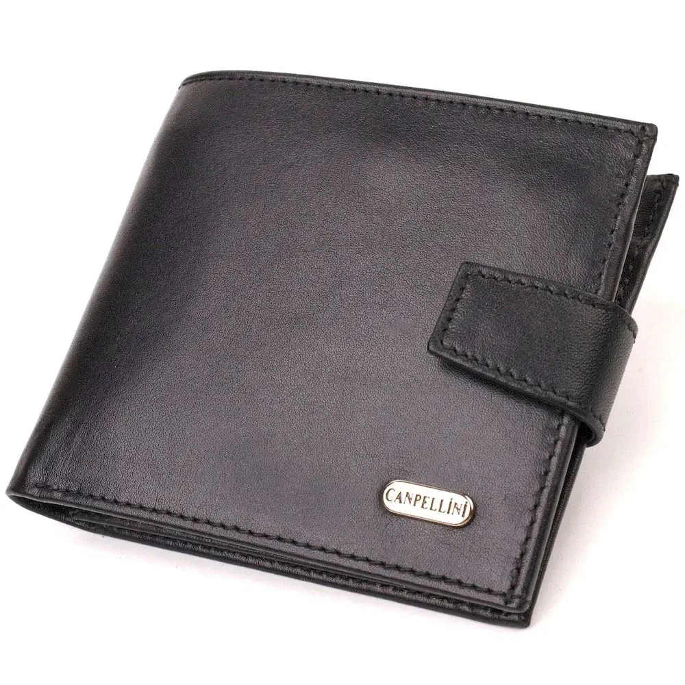 Стильний чоловічий гаманець з натуральної гладкої шкіри CANPELLINI 21880 Чорний