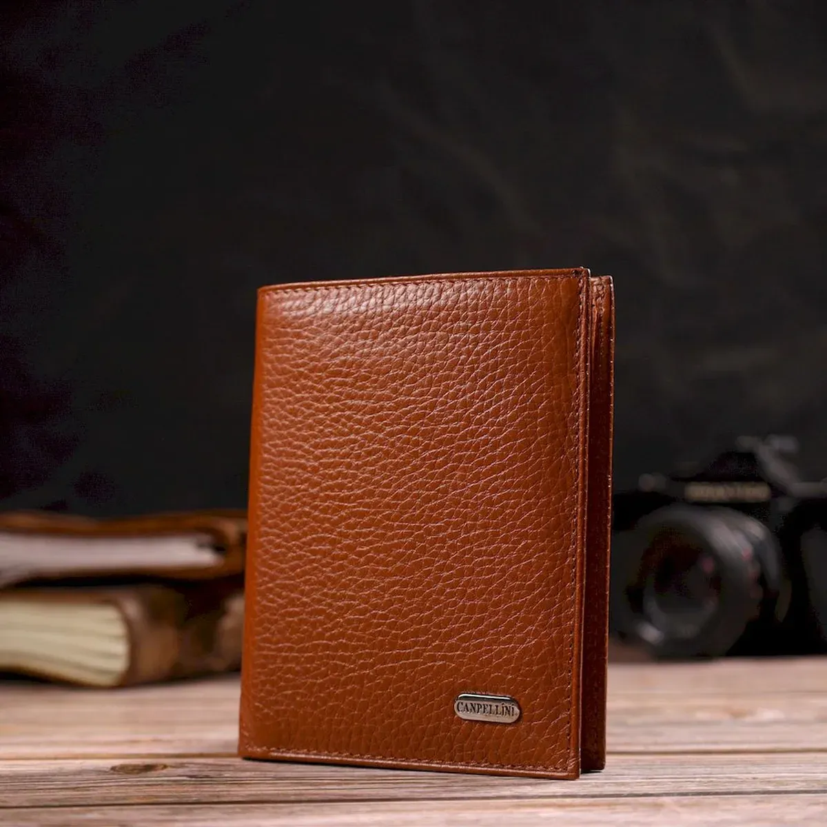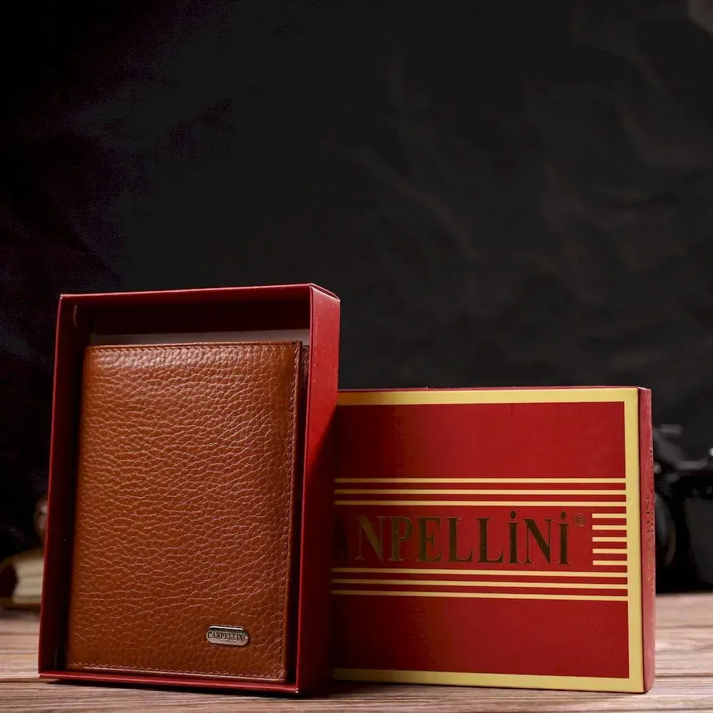 Стильний чоловічий гаманець вертикального формату з натуральної шкіри CANPELLINI 21754 Рудий