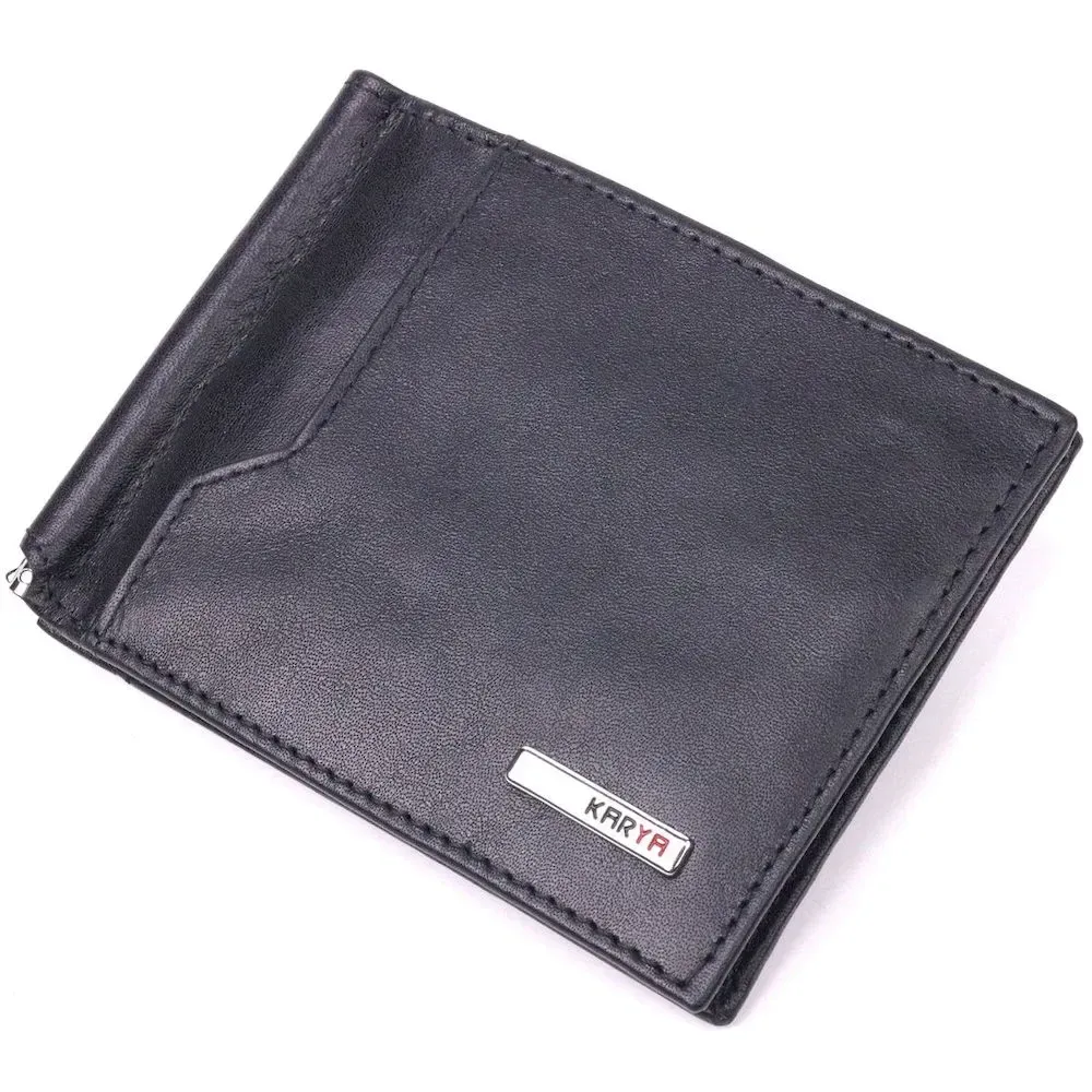 Стильний чоловічий затиск із натуральної гладкої шкіри KARYA 21414 Чорний
