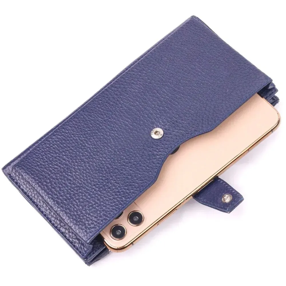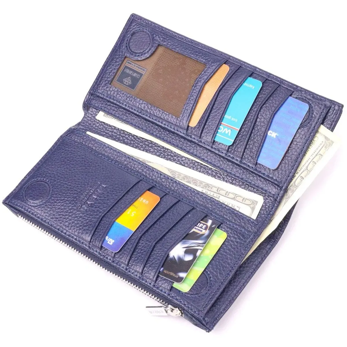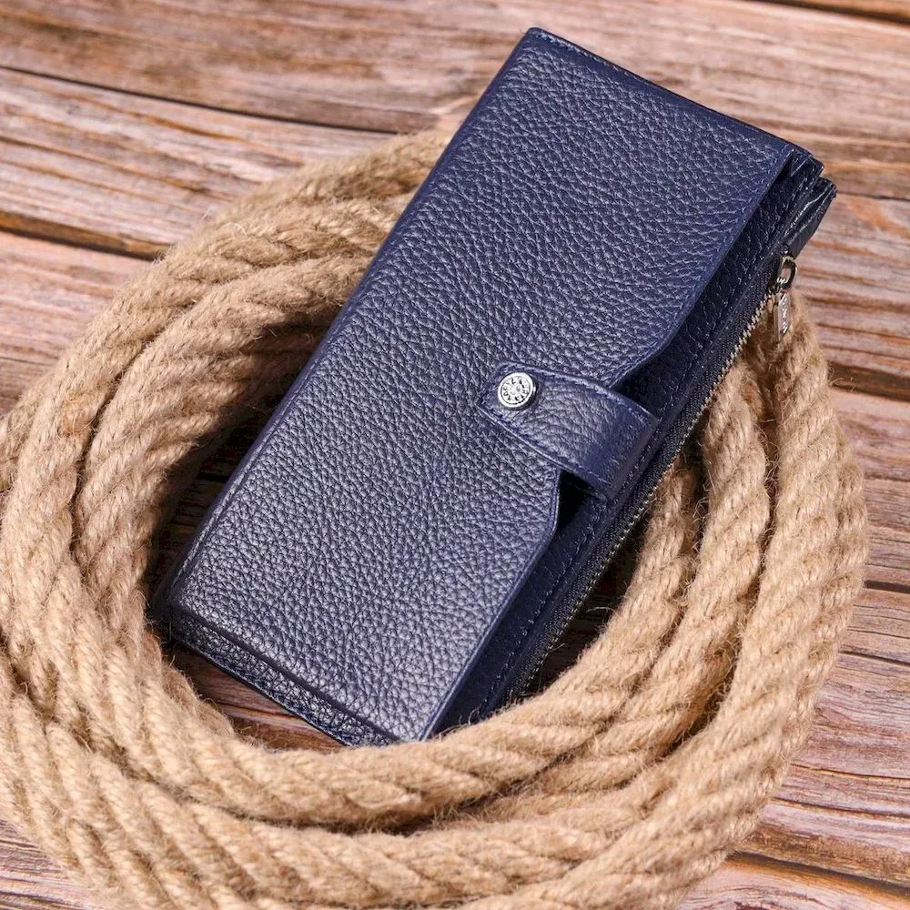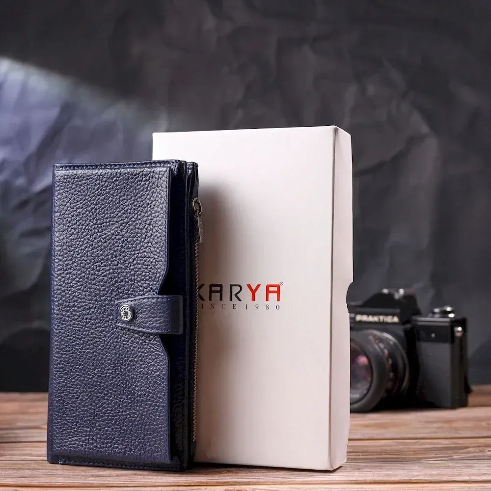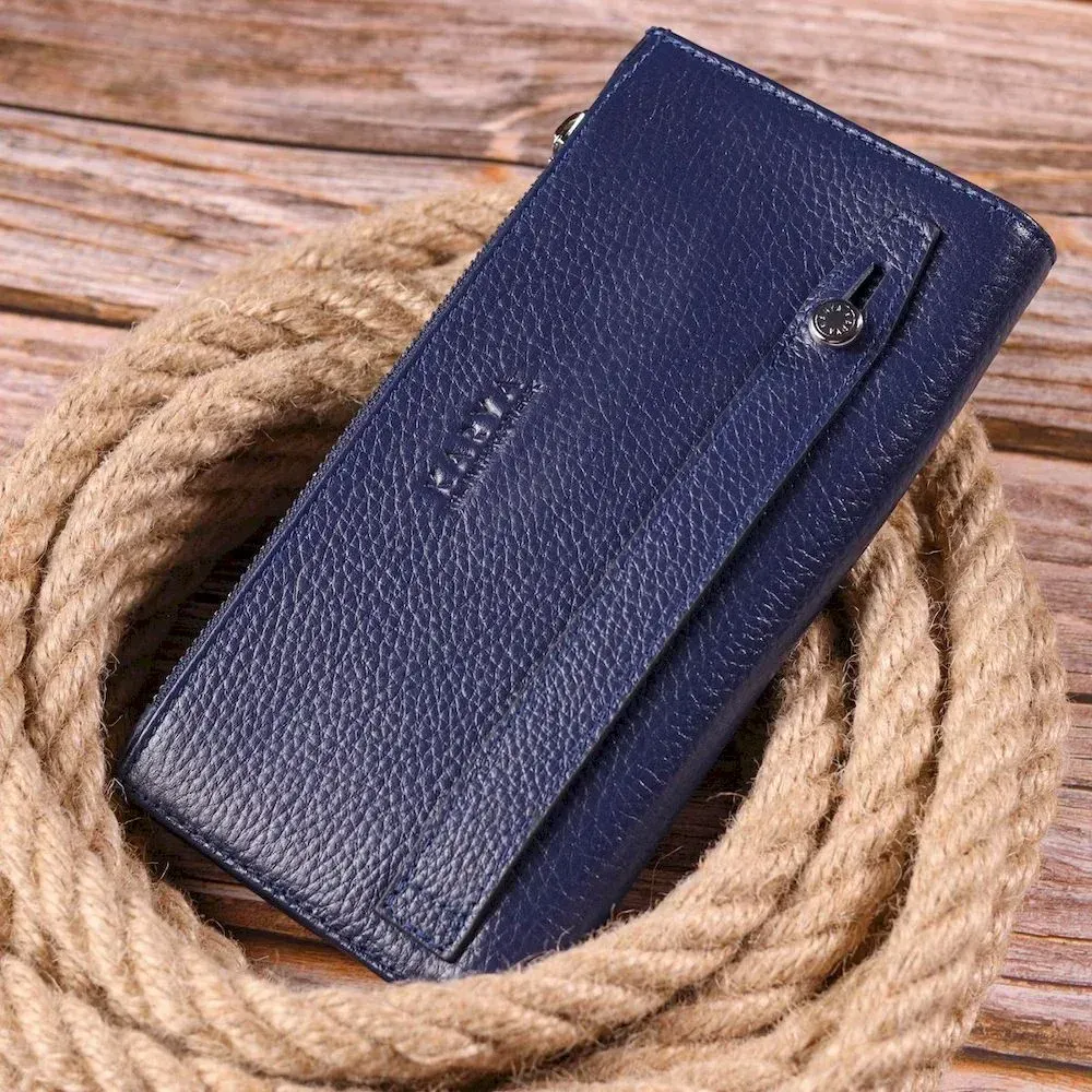 Стильний вертикальний гаманець із натуральної шкіри KARYA 21423 Синій