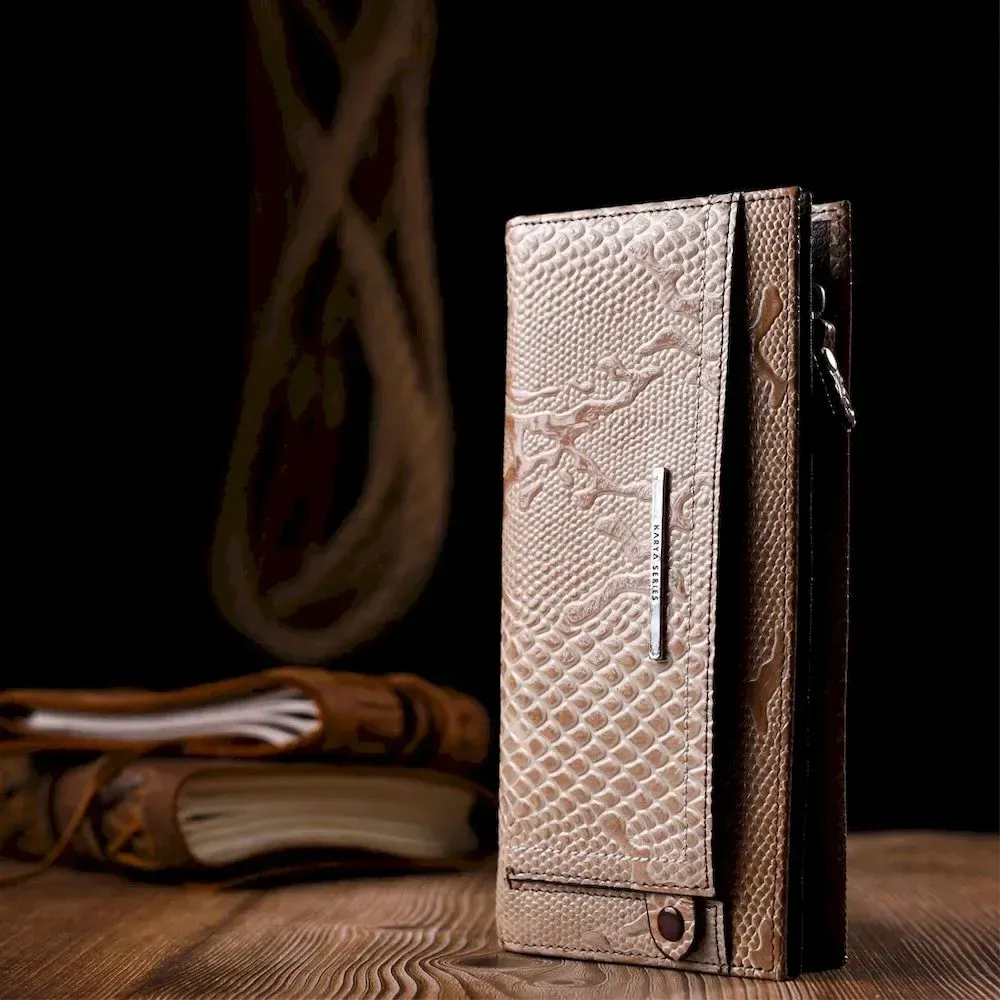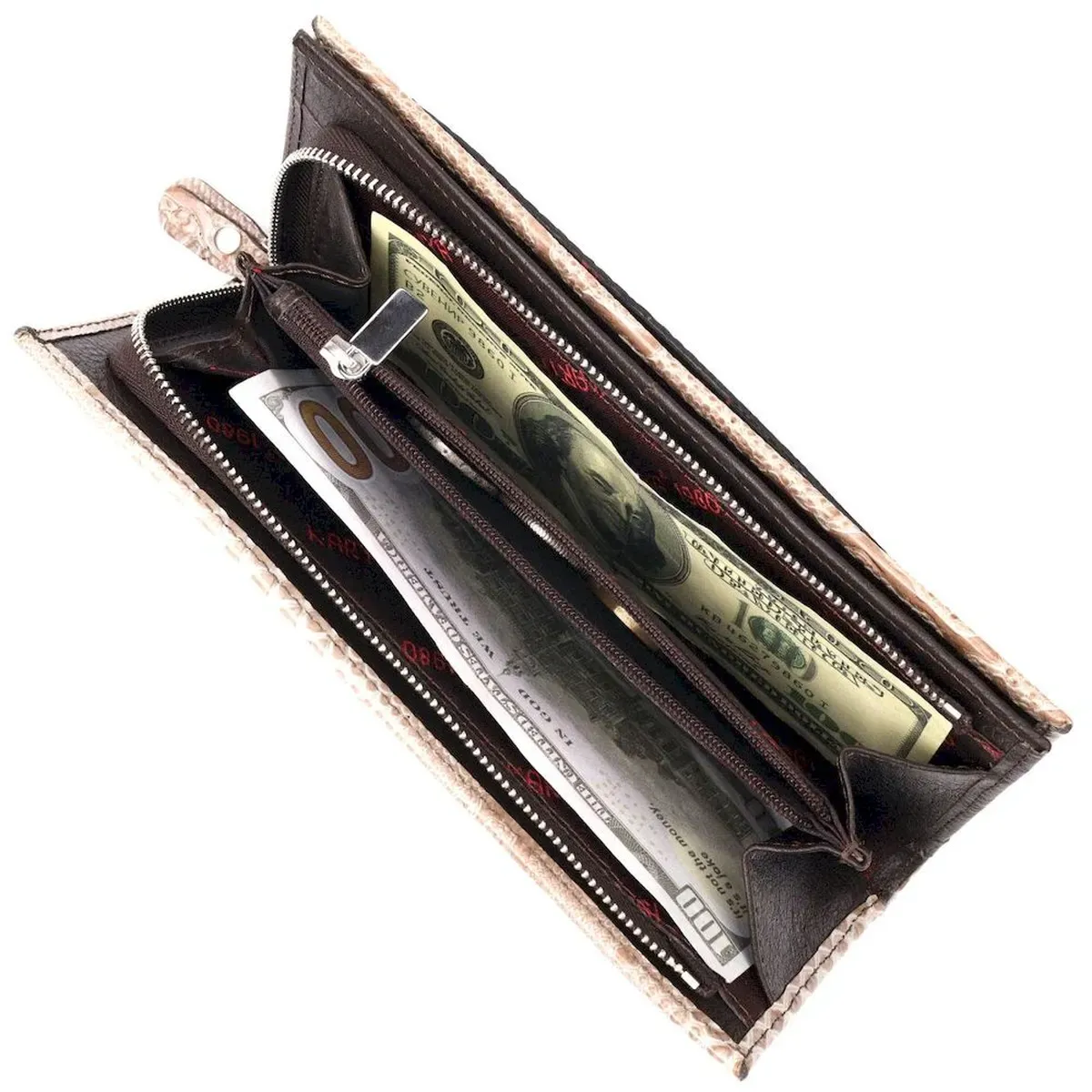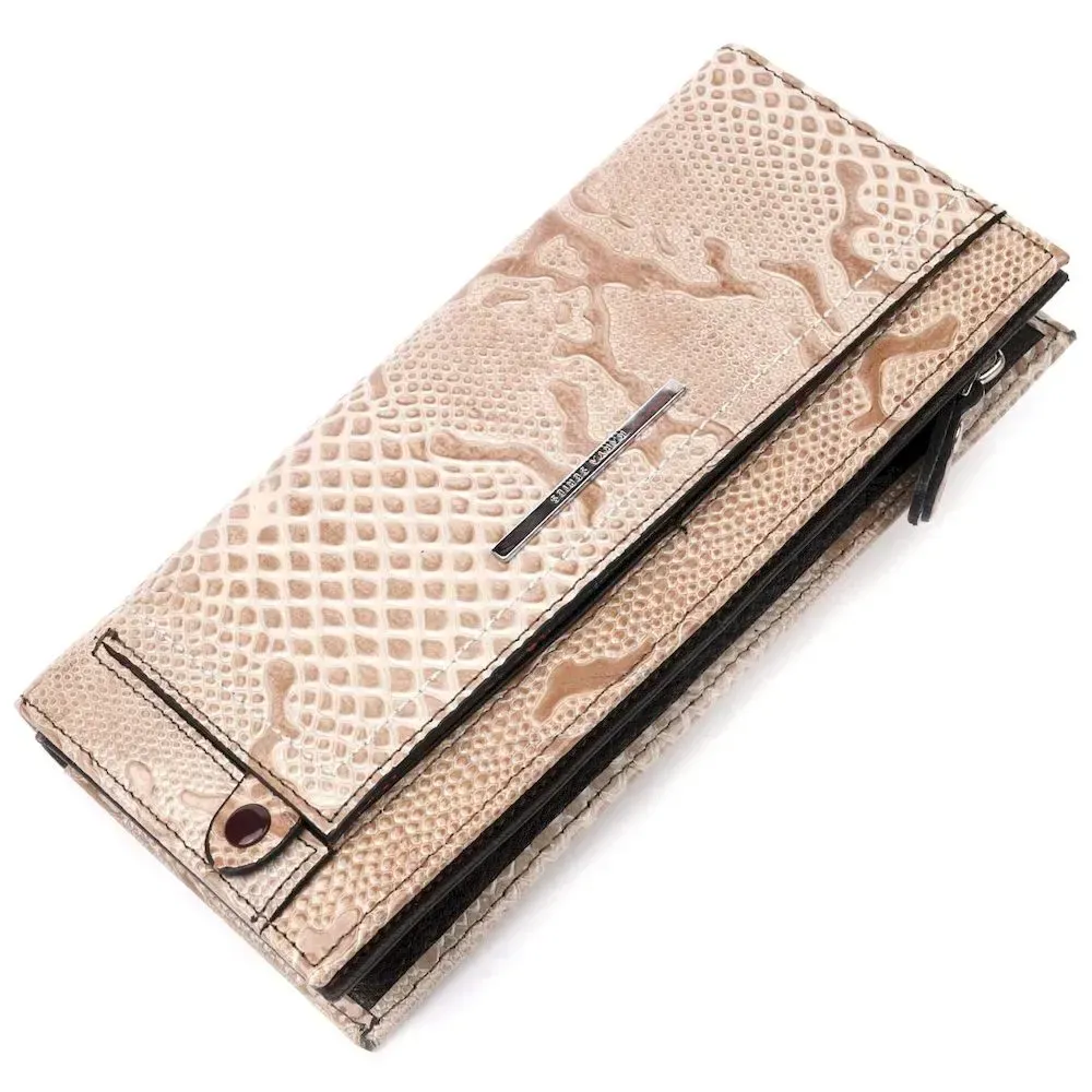 Стильний горизонтальний гаманець жіночий з натуральної фактурної шкіри KARYA 21101 Бежевий