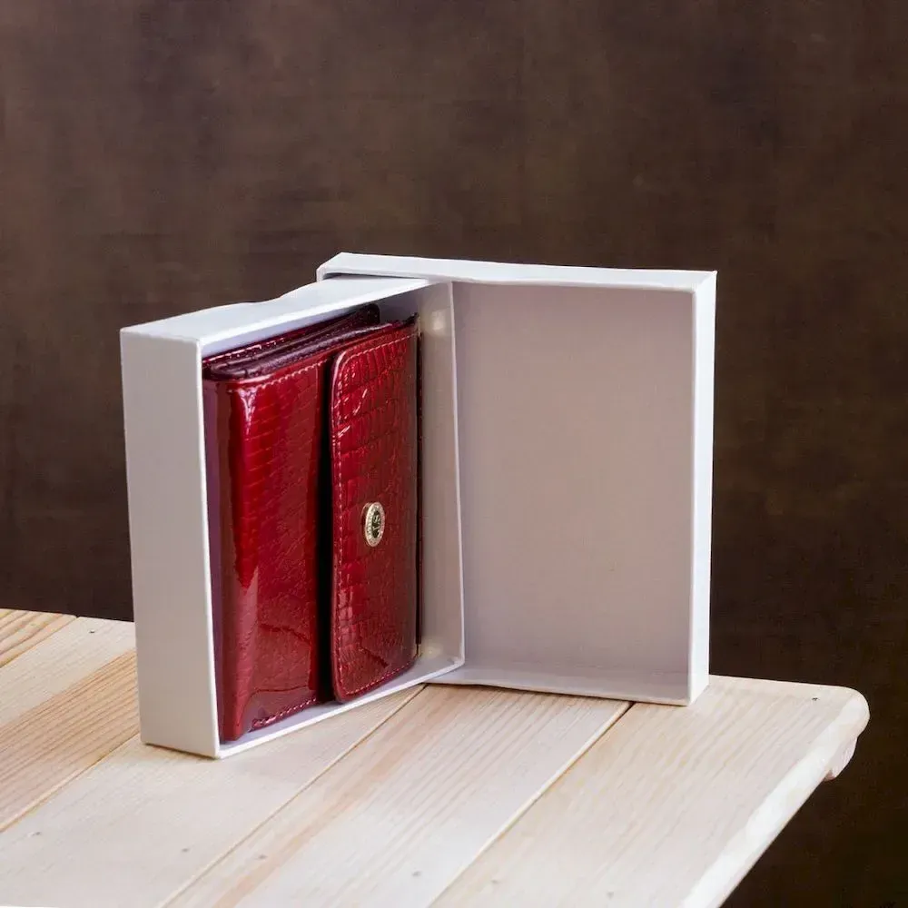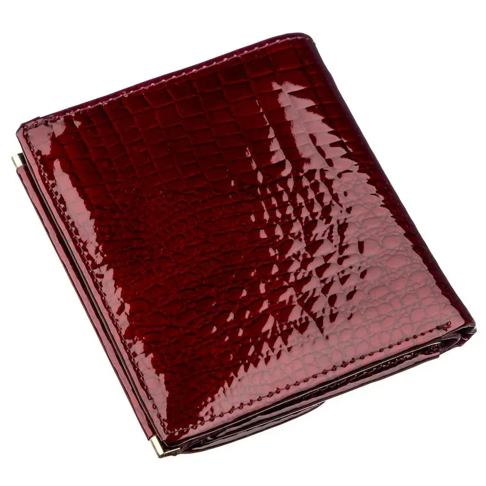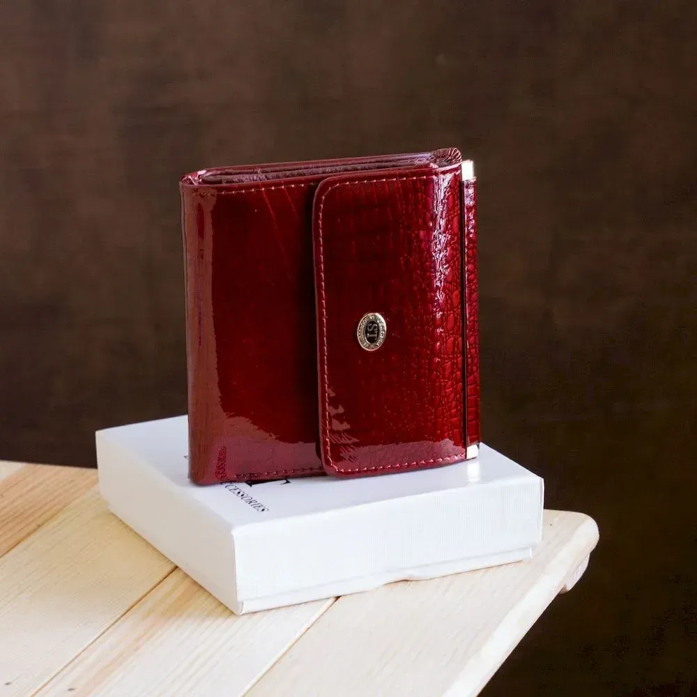 Невеликий та компактний жіночий гаманець з чудовим дизайном. Матеріал виготовлення – першокласна натуральна шкіра з м'якою та гладкою фактурою. Виріб має шикарний та багатий бордовий колір, а особливого шарму надає те, що аксесуар покритий лаком. Дана модель дуже стильна і просто необхідна у гардеробі жінки з чудовим смаком. Наповнення гаманця досить практичне та зручне, незважаючи на його розміри. Є відділення для купюр та банкнот, для карток та візиток, та фото рідних. Монетниця завбачливо розташована на зовнішній стороні, а це сприяє швидкому доступу до дрібниці. Запакований гаманець у фірмову картонну коробку.