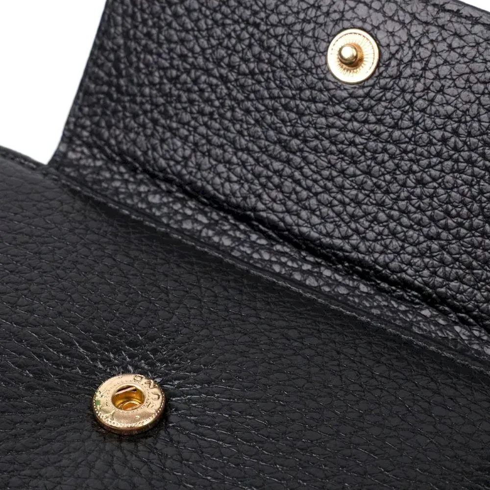 Зручний жіночий гаманець із натуральної шкіри. Аксесуар складається з двох широких відділень для купюр, трьох осередків для пластикових карток, двох прилеглих кишень та монетниці на блискавці, з кишенею-перегородкою на змійці. У виробі використано якісну фурнітуру золотистого кольору. Закривається гаманець клапаном на кнопку. На клапані всередині золотистий логотип компанії виробника. Купуючи цей шкіряний гаманець, Ви не тільки набуваєте стильної речі, але й отримуєте якісний аксесуар, який прослужить не один рік.