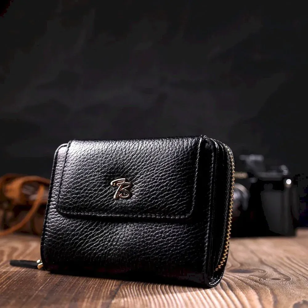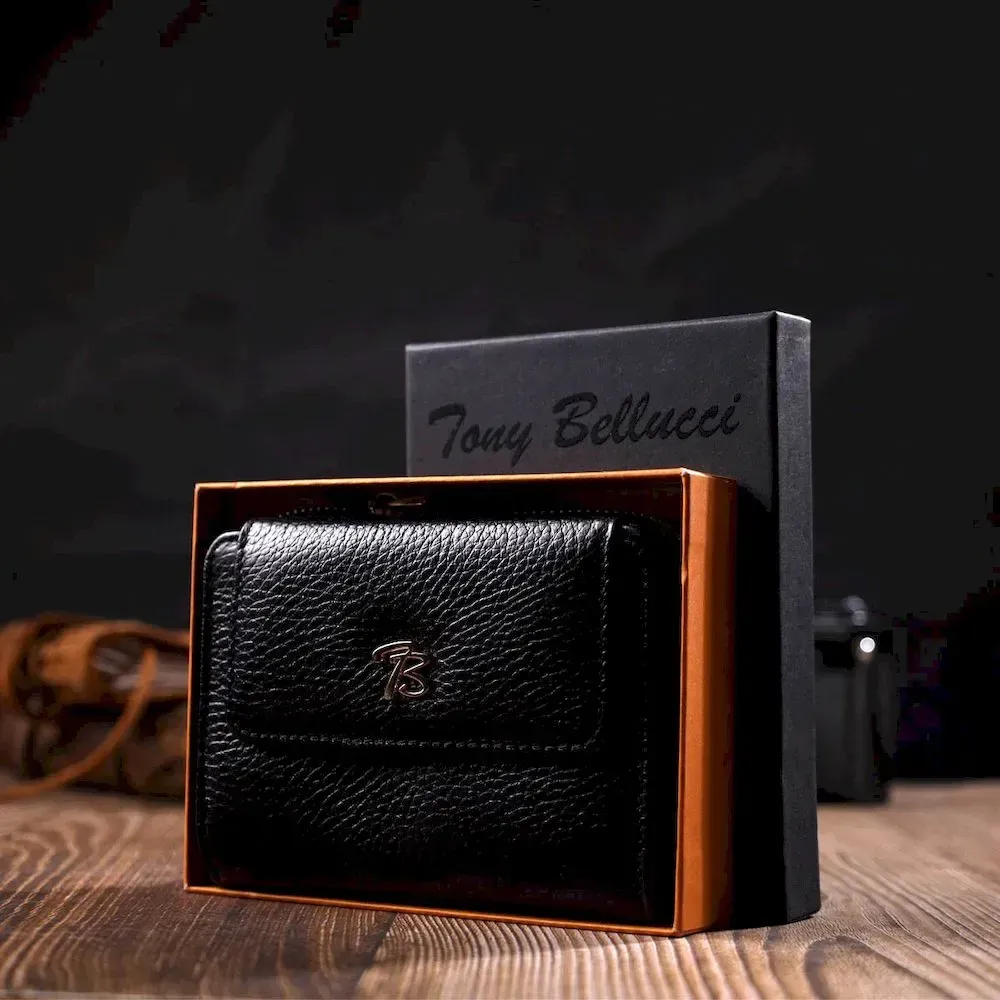 Стильний жіночий гаманець з місткою монетницею на блискавці з натуральної шкіри Tony Bellucci 22012 Чорний
