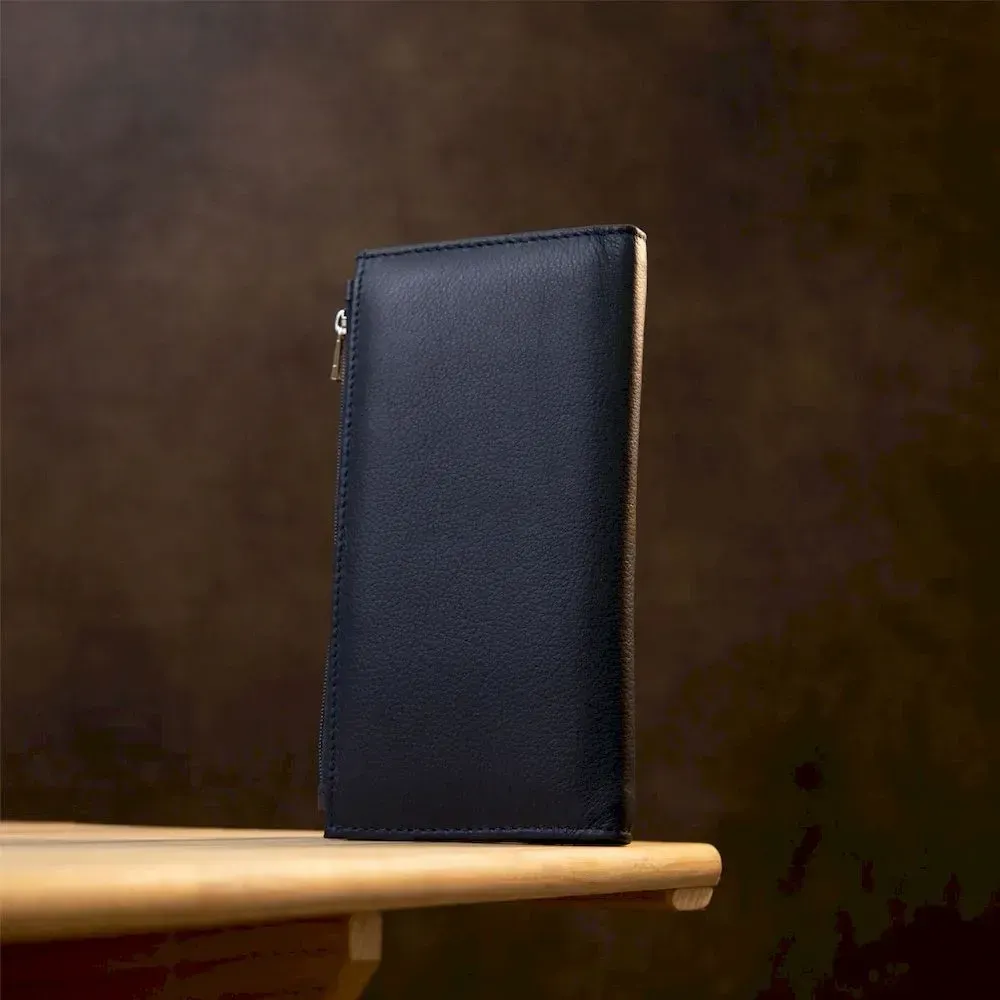 Якщо Ви хочете практичний і класичний гаманець, але чорний колір вже набрид, то дана модель буде дуже доречною, адже темно-синій колір виглядає стильно і цікаво. Також виріб наповнений достатнім кількістю необхідних відділень та слотів для карток. Зроблено воно з натуральної приємної на ощупь, м'якої зернистої шкіри високої якості, завдяки чому прослужити своєму господареві дуже довго. Цей гаманець – красиве та функціональне придбання.