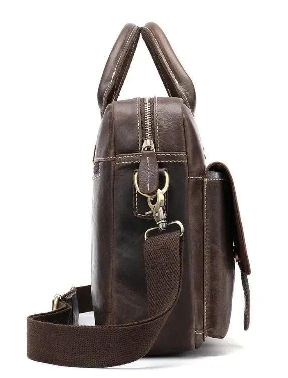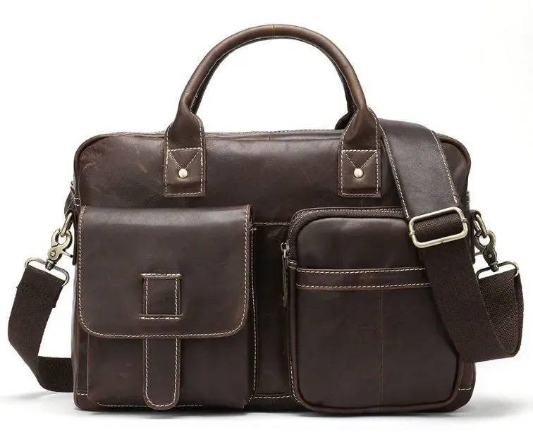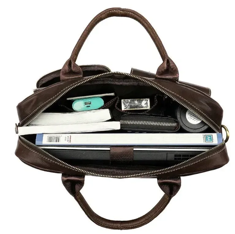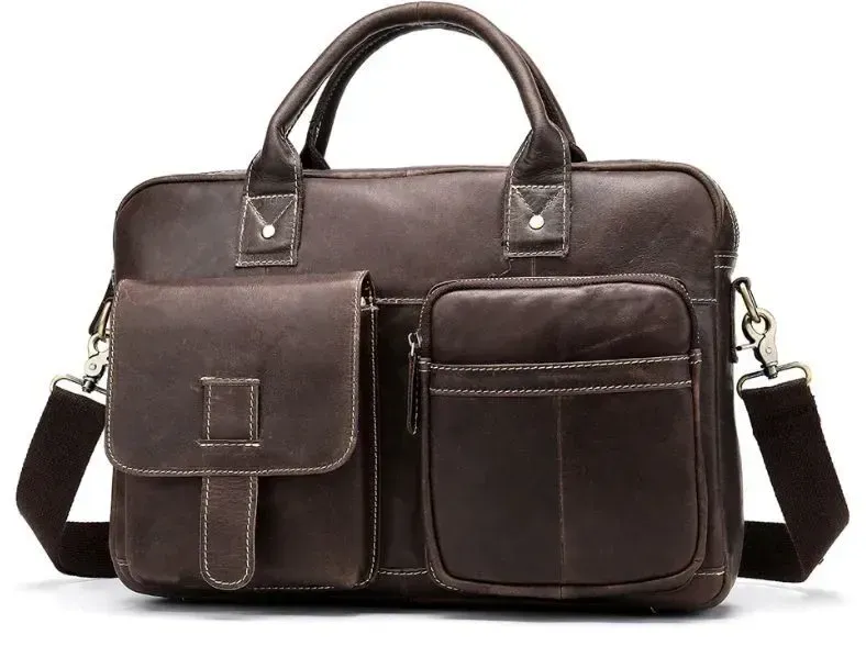 - текстильний ремінець зі шкіряною вставкою на плече (знімний);< /p> Ділова сумка з натуральної шкіри для чоловіків. У сумку легко вміщується ноутбук та папки з документами. Ідеальний вибір для найзайнятіших та ділових чоловіків. Шкіра м'яка на дотик і чудово носиться. По краях аксесуар прошитий світлою ниткою. Усередині сумки міцна текстильна підкладка коричневого кольору. Ви будете приємно здивовані, тим як сумка довго носитиметься. Може бути чудовим варіантом для подарунка будь-якому чоловікові.