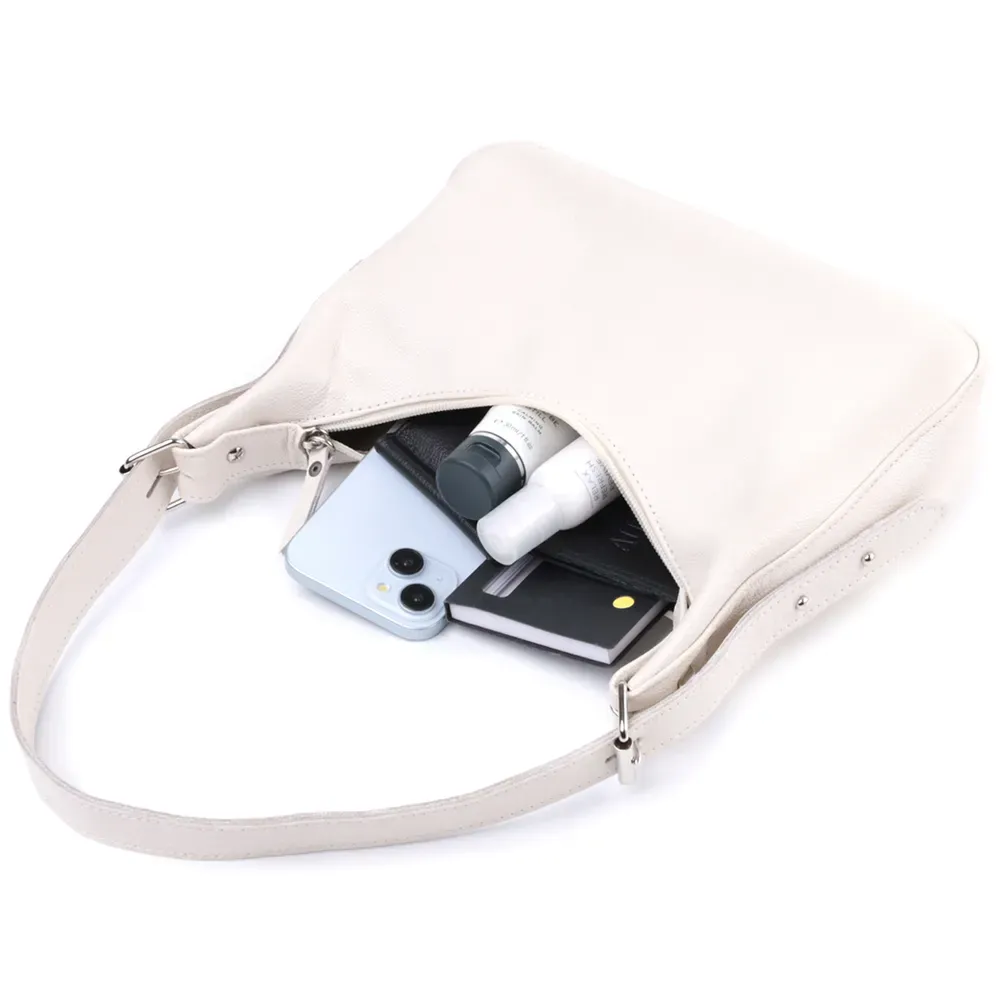 Сумка багет з регульованим ременем з натуральної шкіри Shvigel 22831 Бежева