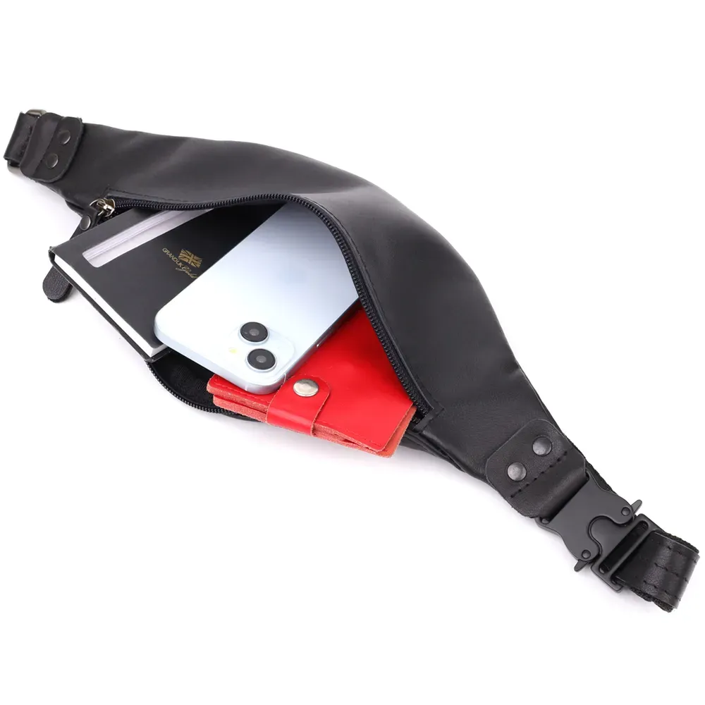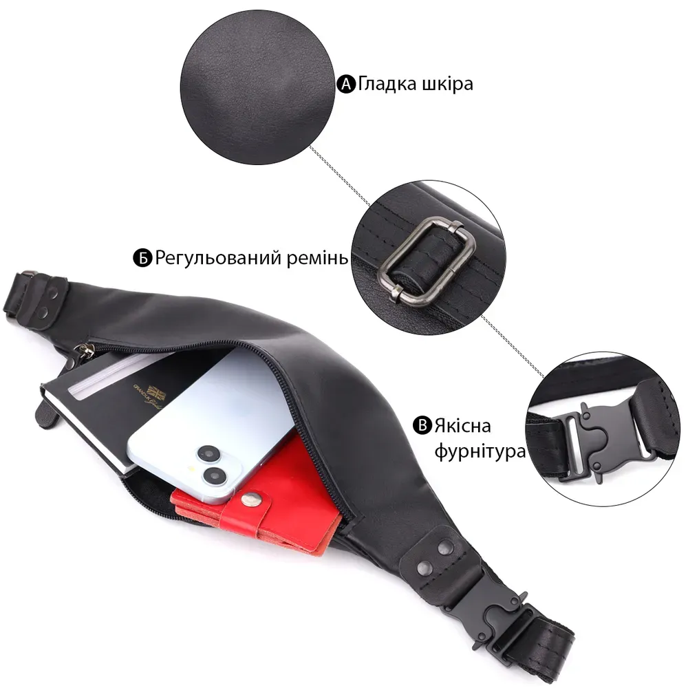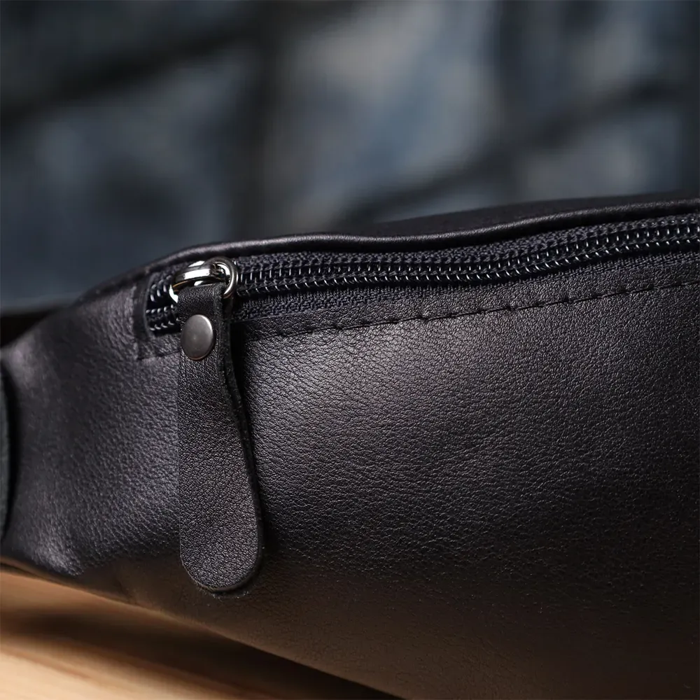 Сумка бананка для чоловіків з гладкої натуральної шкіри Shvigel 23134 Чорний