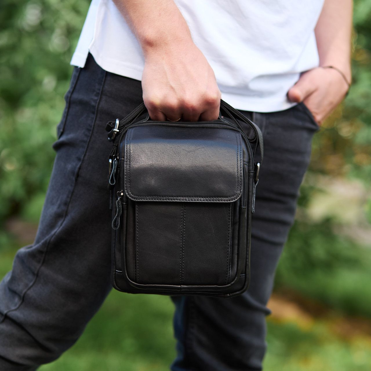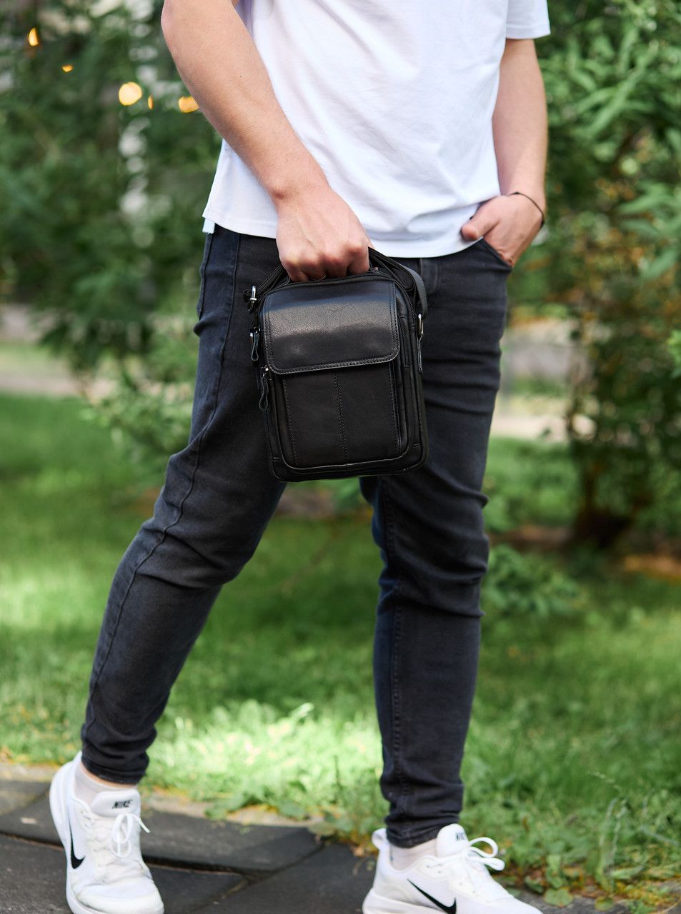 Сумка-барсетка чоловіча через плече 19х24х8, месенджер шкіряний гладкий Tiding Bag TD-55467 чорний колір