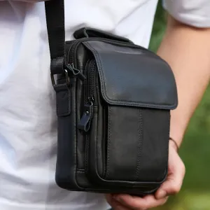 Сумка-барсетка чоловіча через плече шкіряна гладка чорна Tiding Bag TD-55467